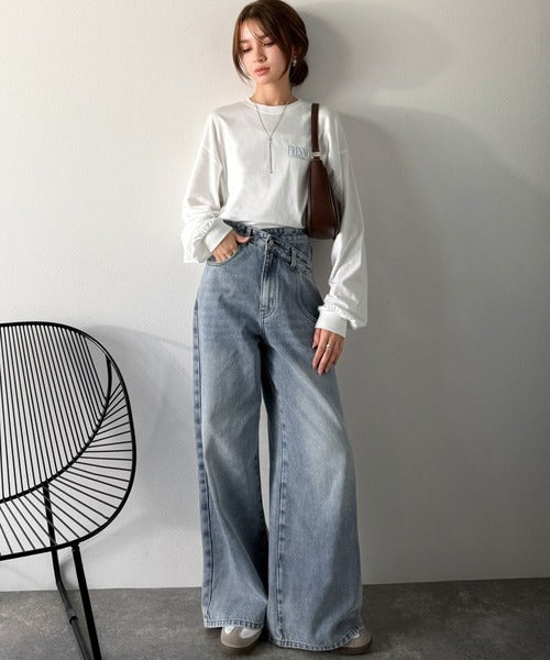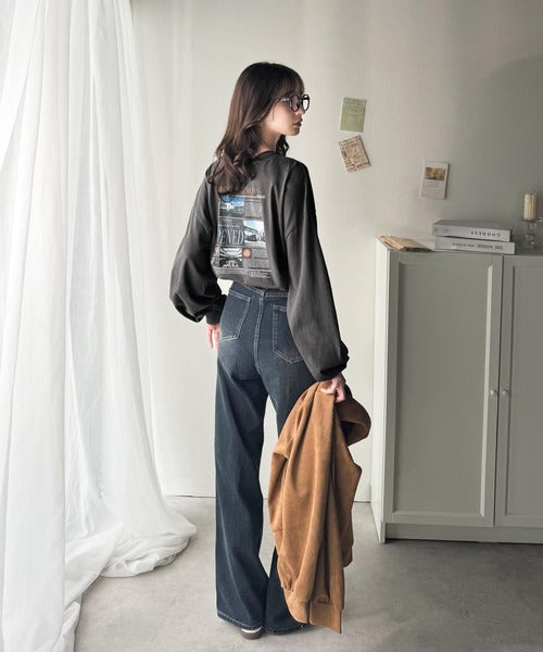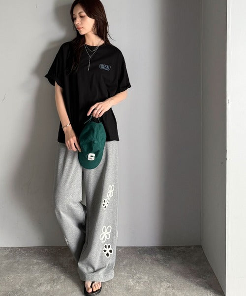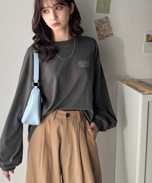 プリントの主張をおさえたデザインなのでどんなボトムスにも合わせやすく
