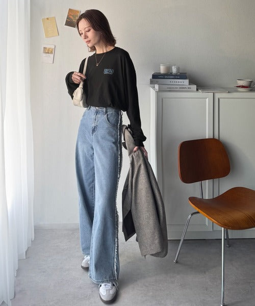 ゆったりとした大きめシルエットで、一枚でも、重ね着でも使える万能なTシャツです。