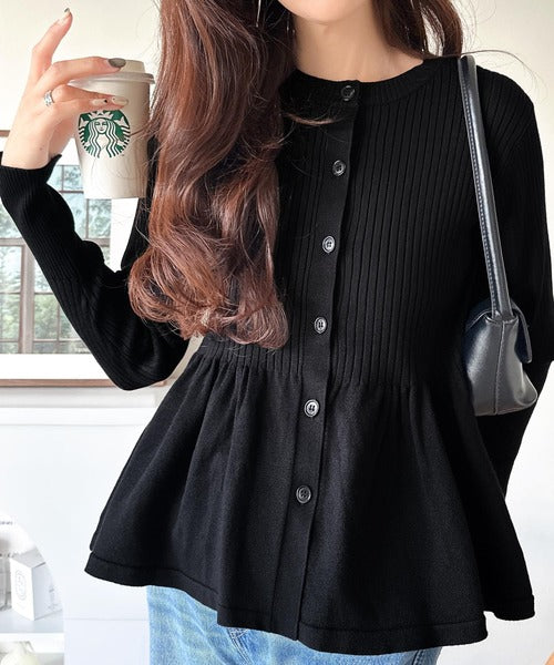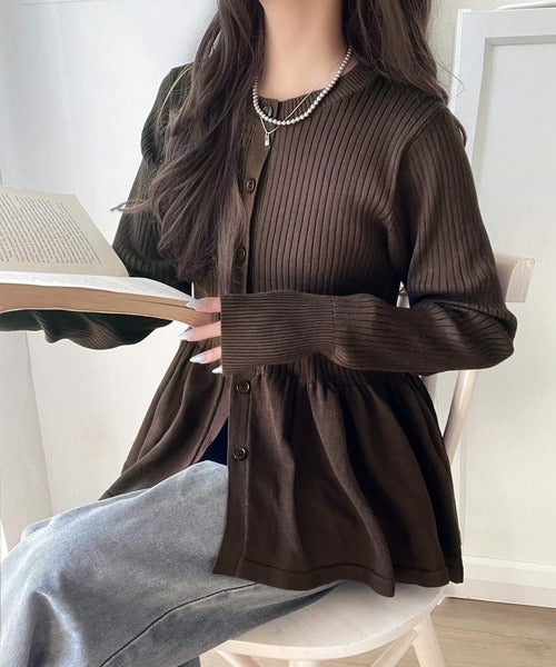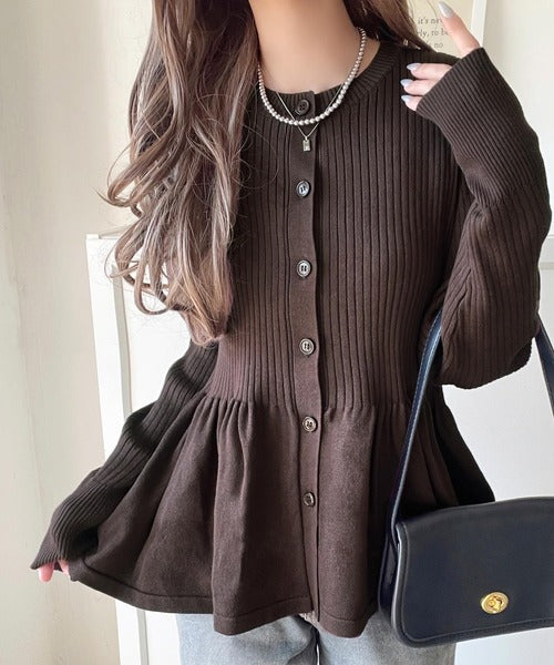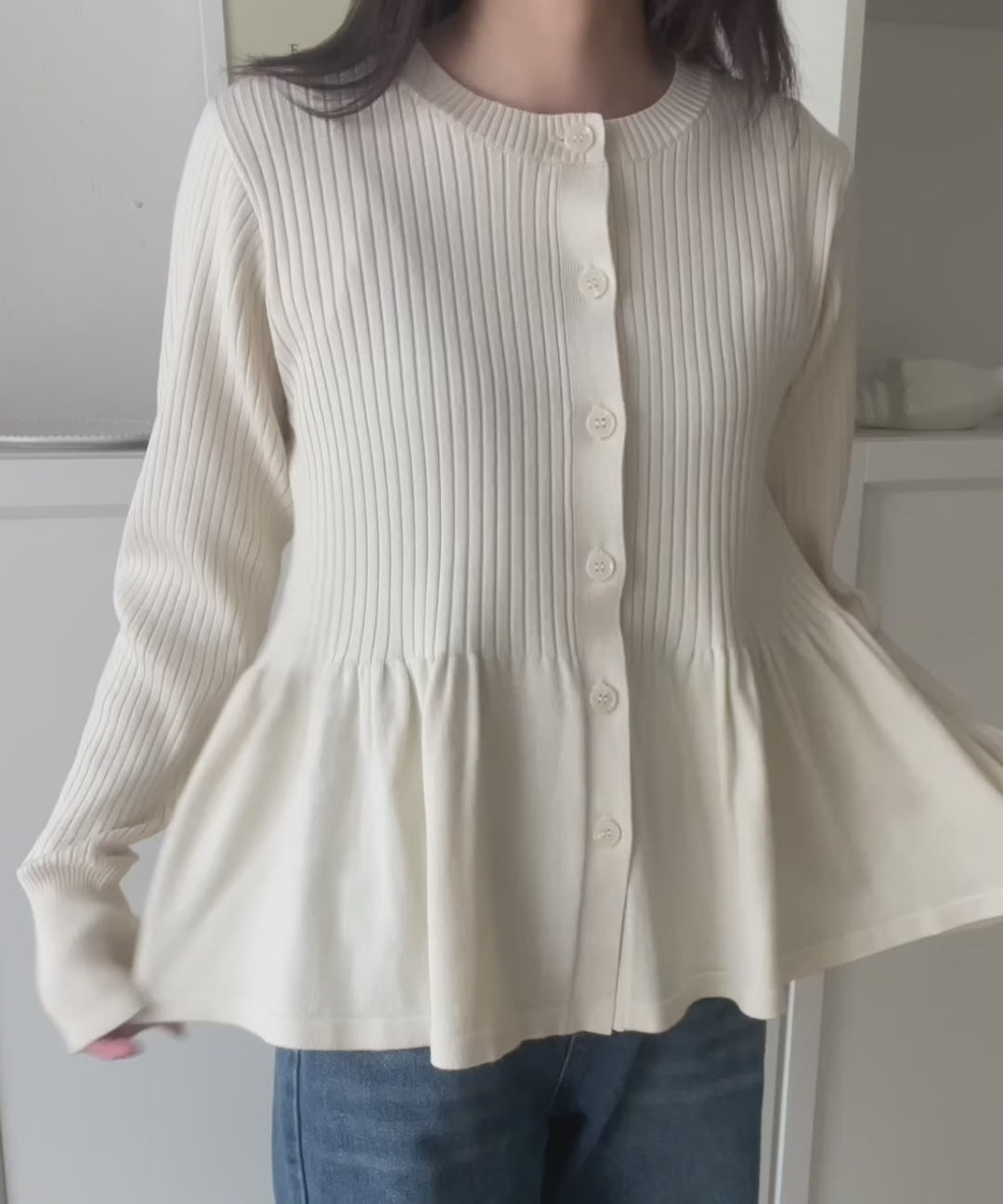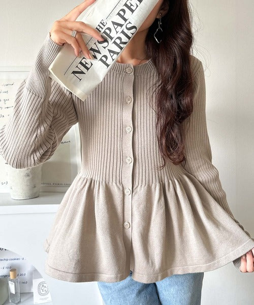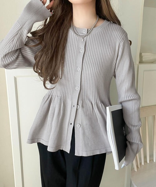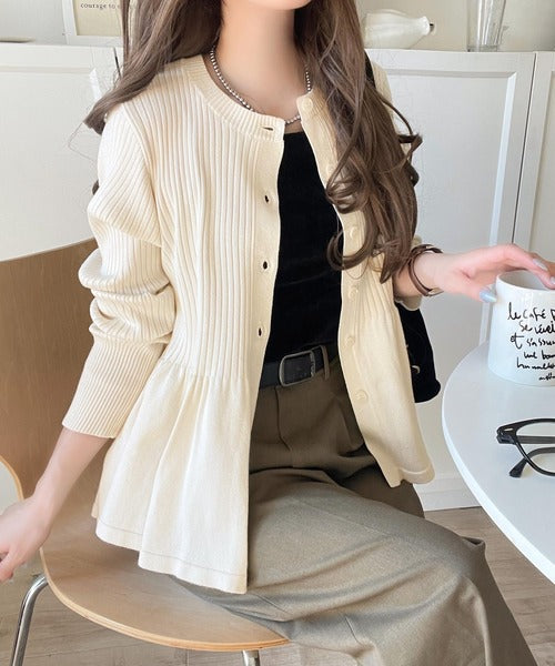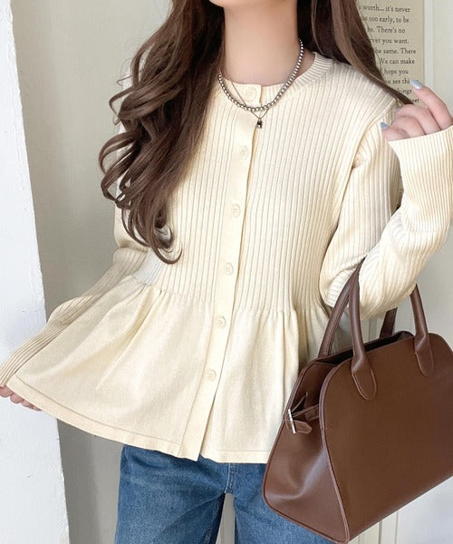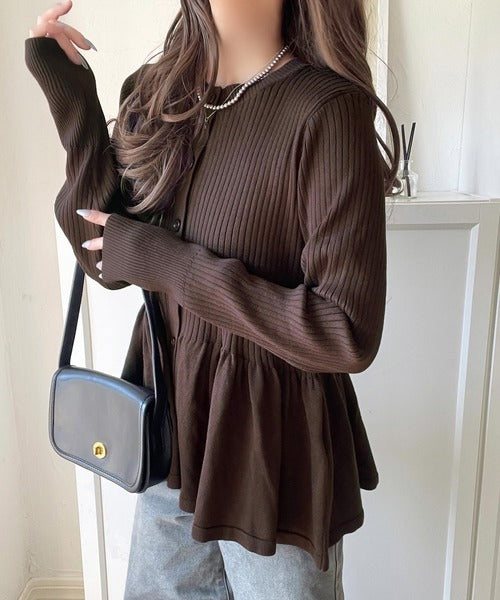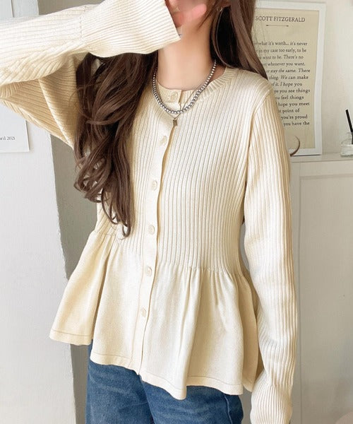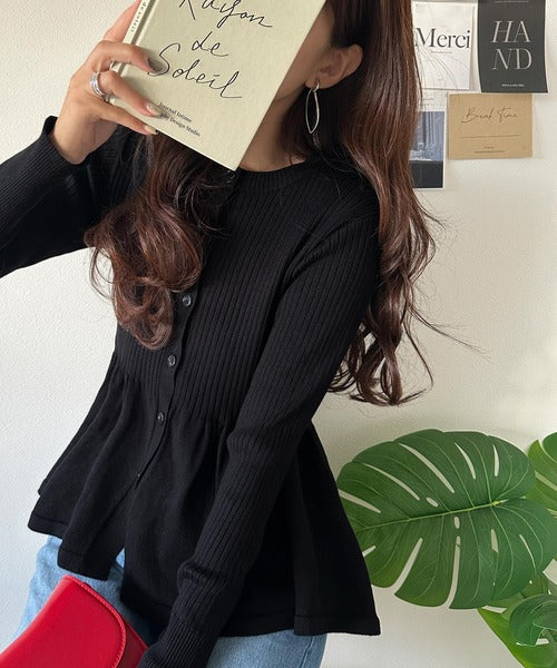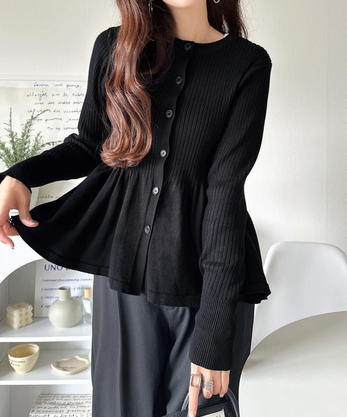 "メリハリ"シルエットで即きれい見え◎リブフリルペプラムカーデトップス(長袖) ce1360006