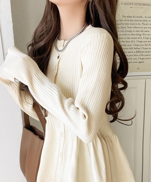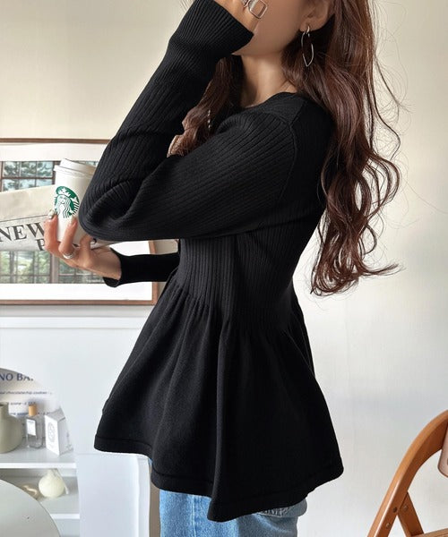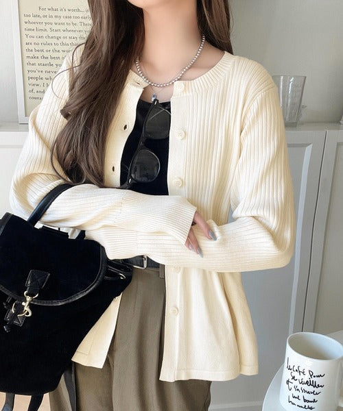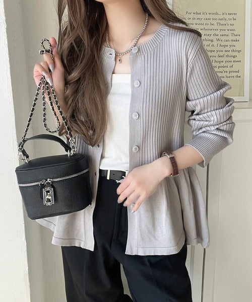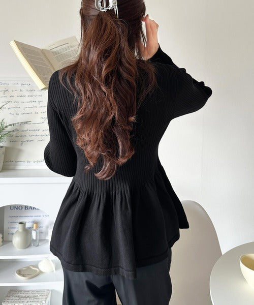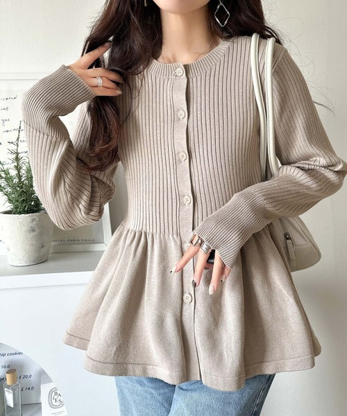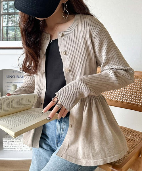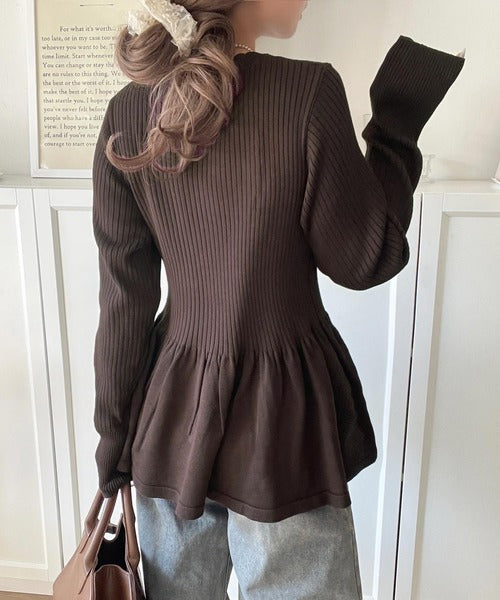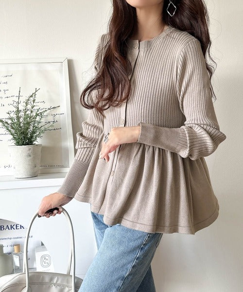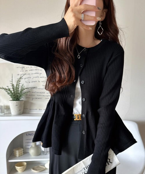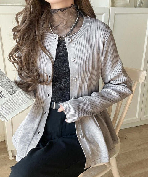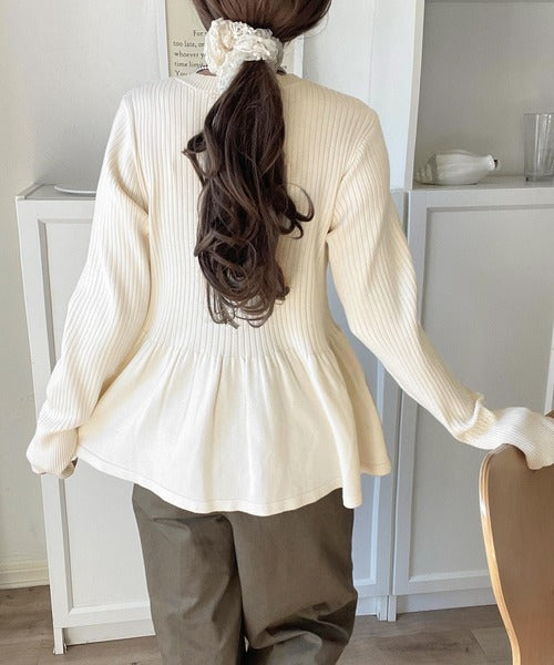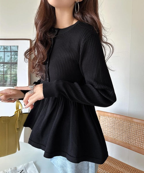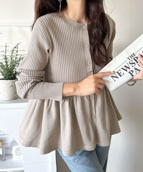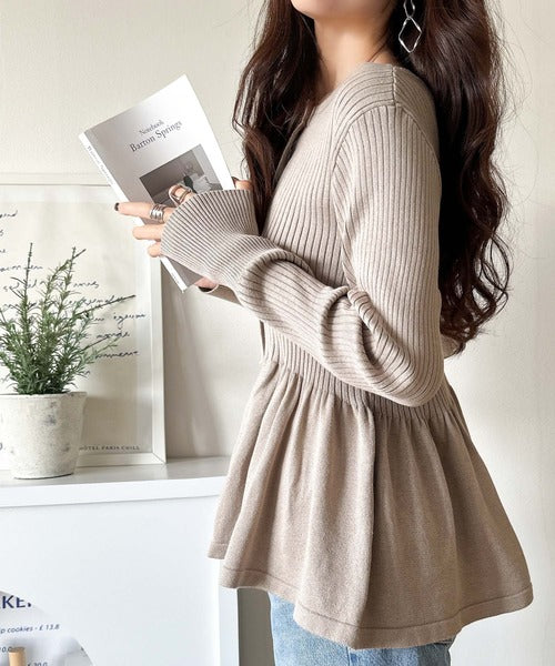 "メリハリ"シルエットで即きれい見え◎リブフリルペプラムカーデトップス(長袖) ce1360006