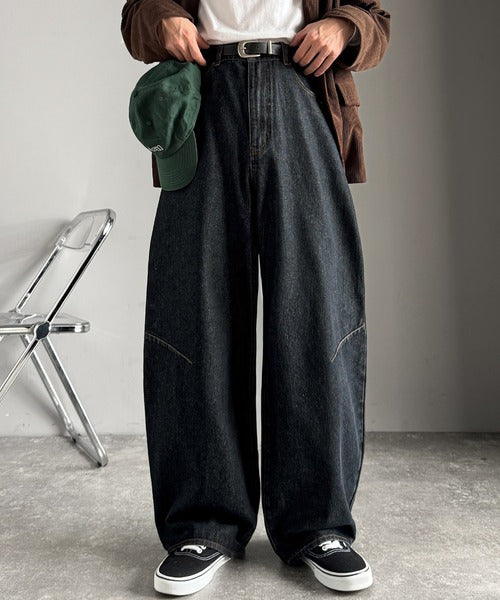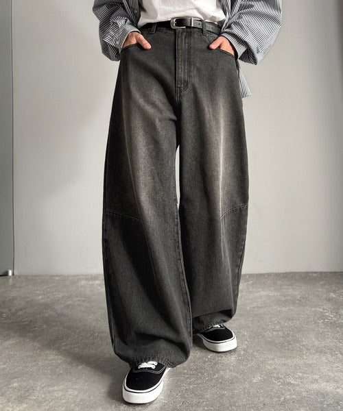【Classical Origin】「シルエットで語る。」ブラスト加工カーブシルエットバレルレッグデニムパンツ/Blasted Curve Silhouette Barrel-Leg Denim Pants co0900007