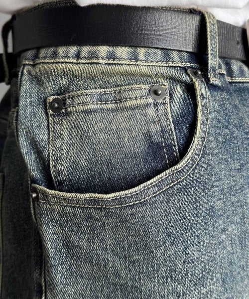 ブラスト加工と裾フリンジでこなれた印象を演出しつつ、ストレッチ素材で快適な履き心地を叶える1本。