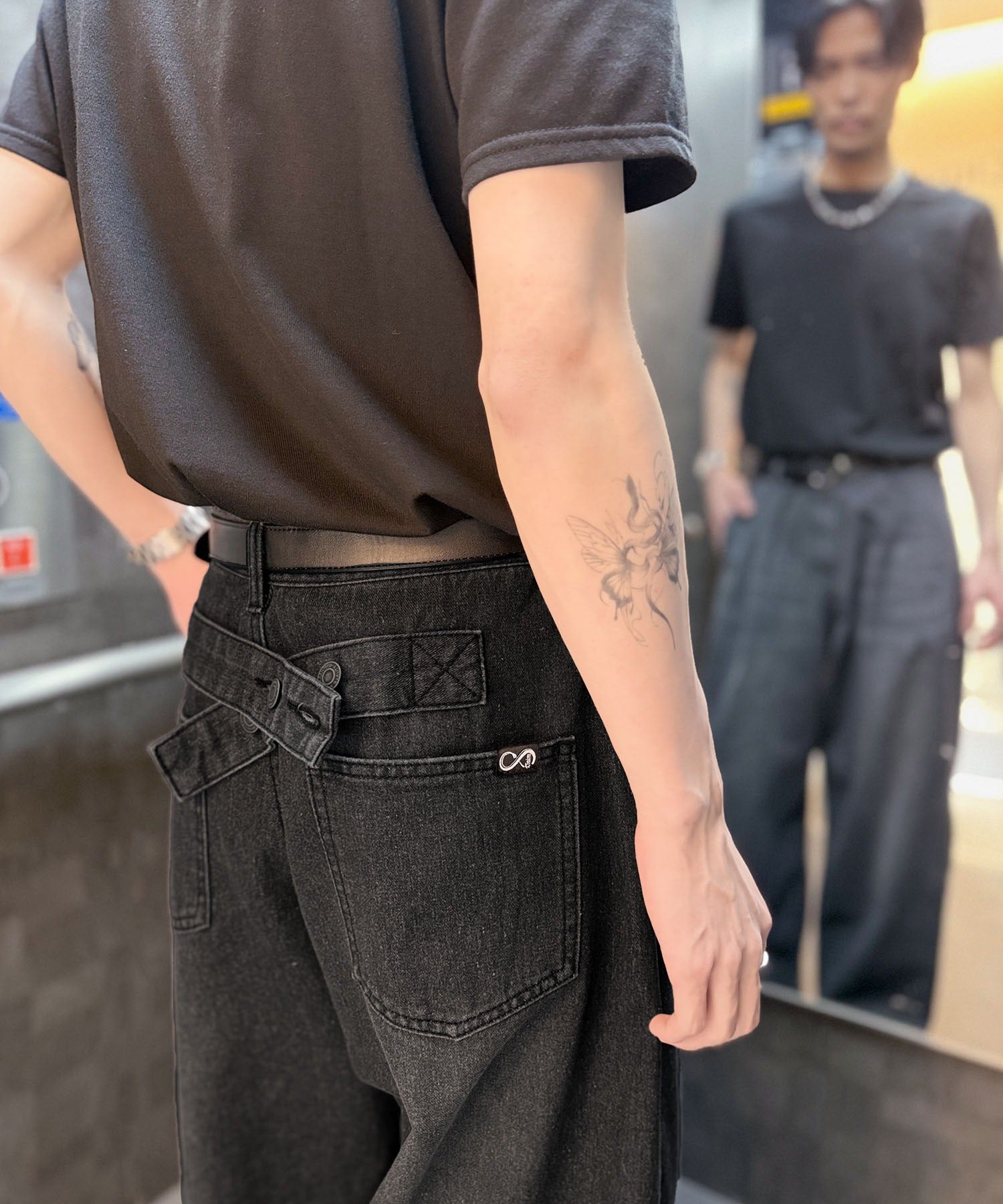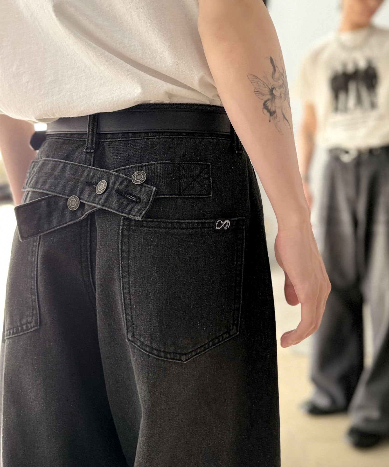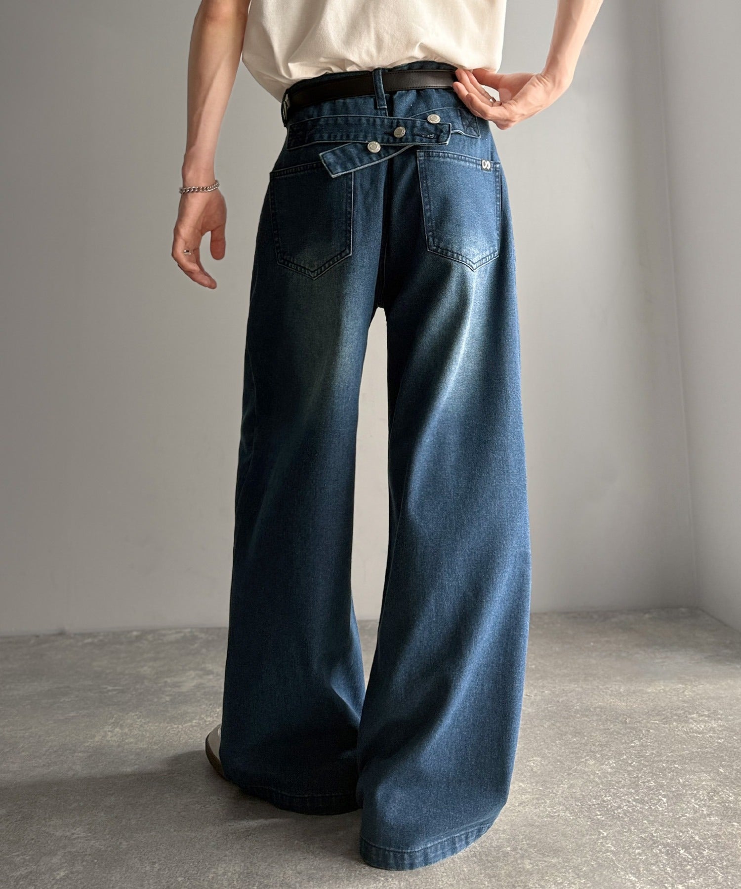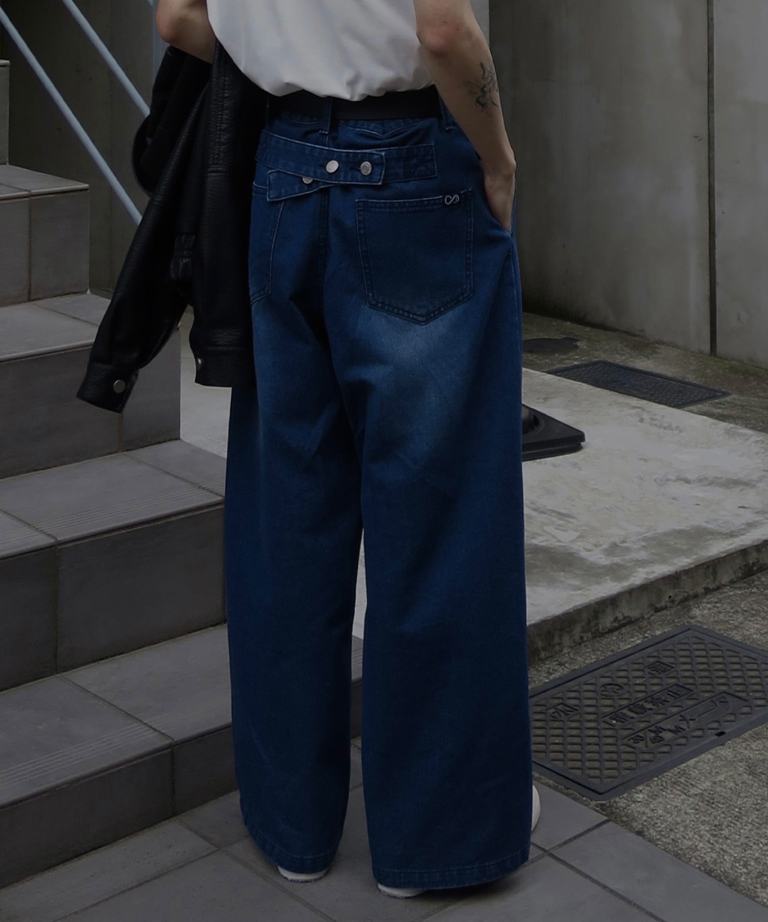 「 Buttoned Strap DesignWide Denim/ ボタン付きストラップデザイン ワイドデニム」