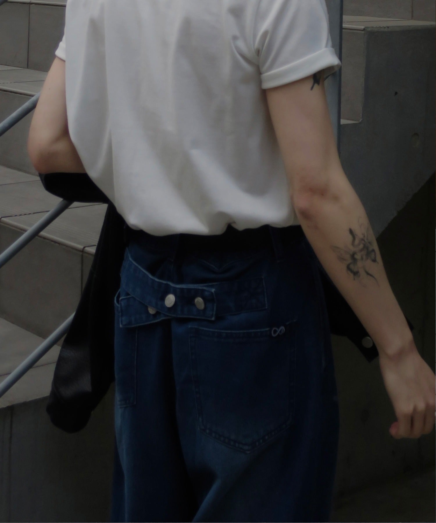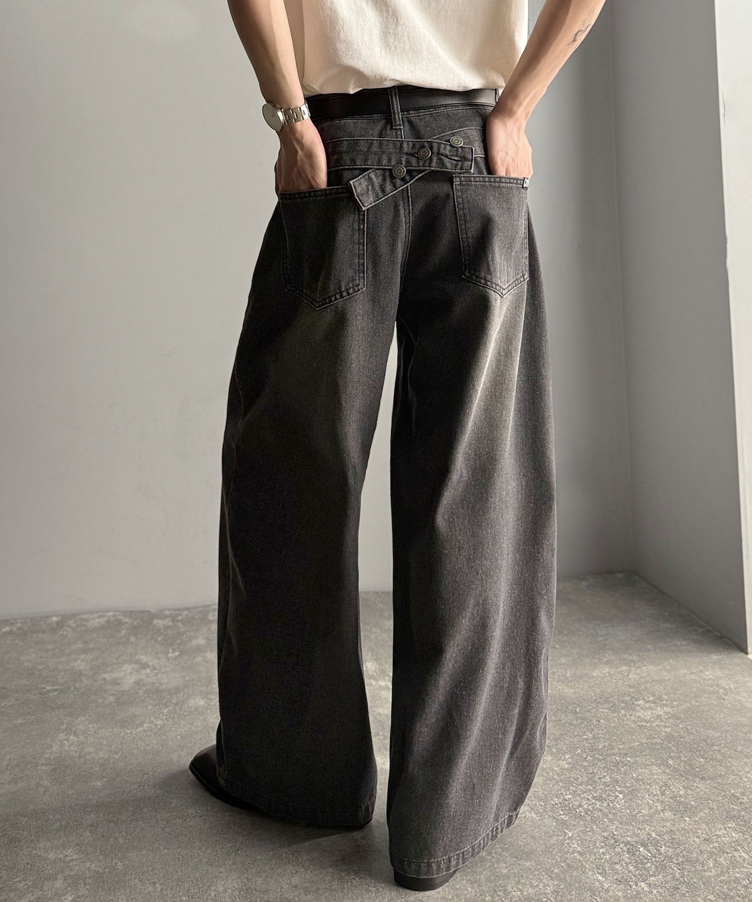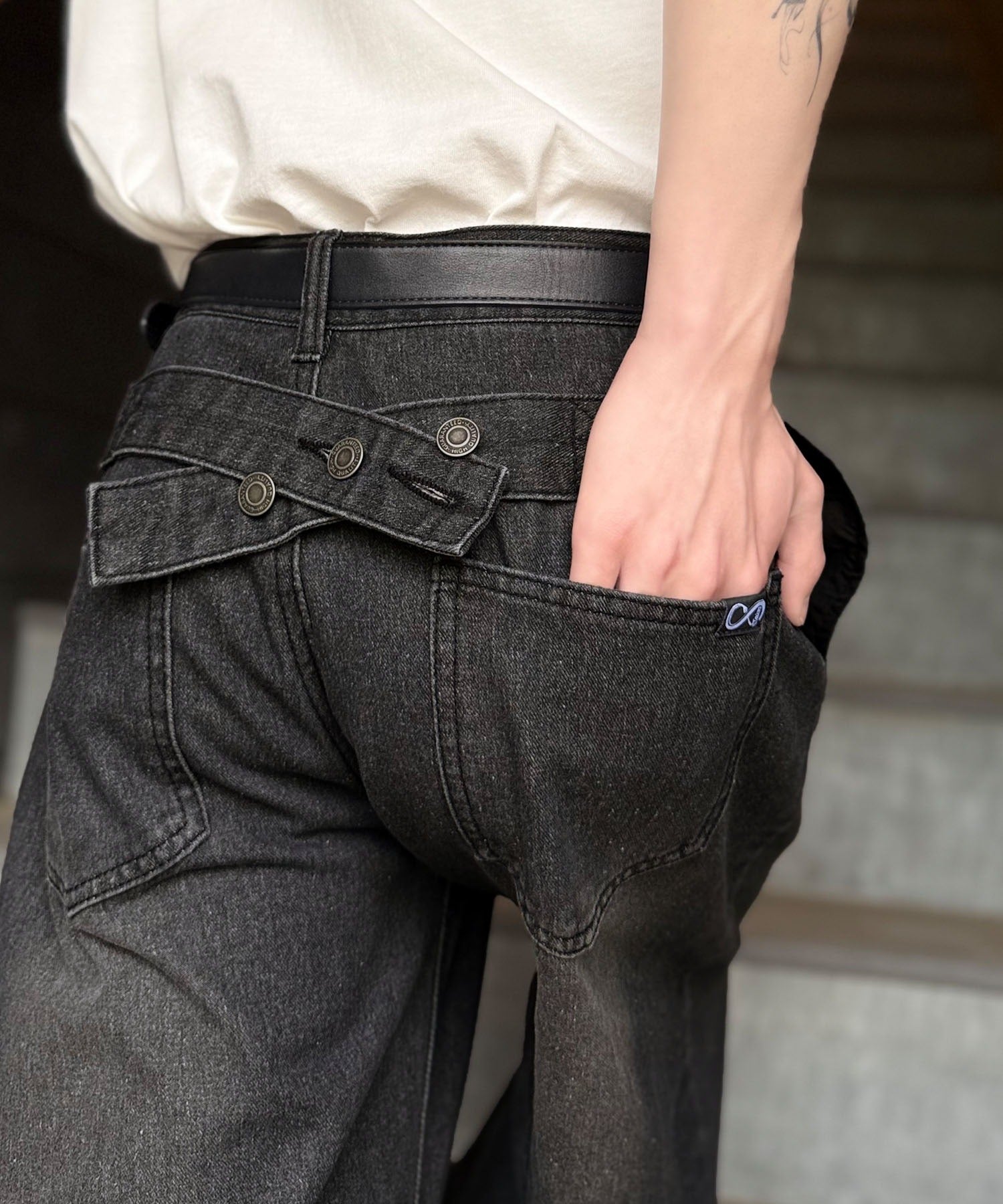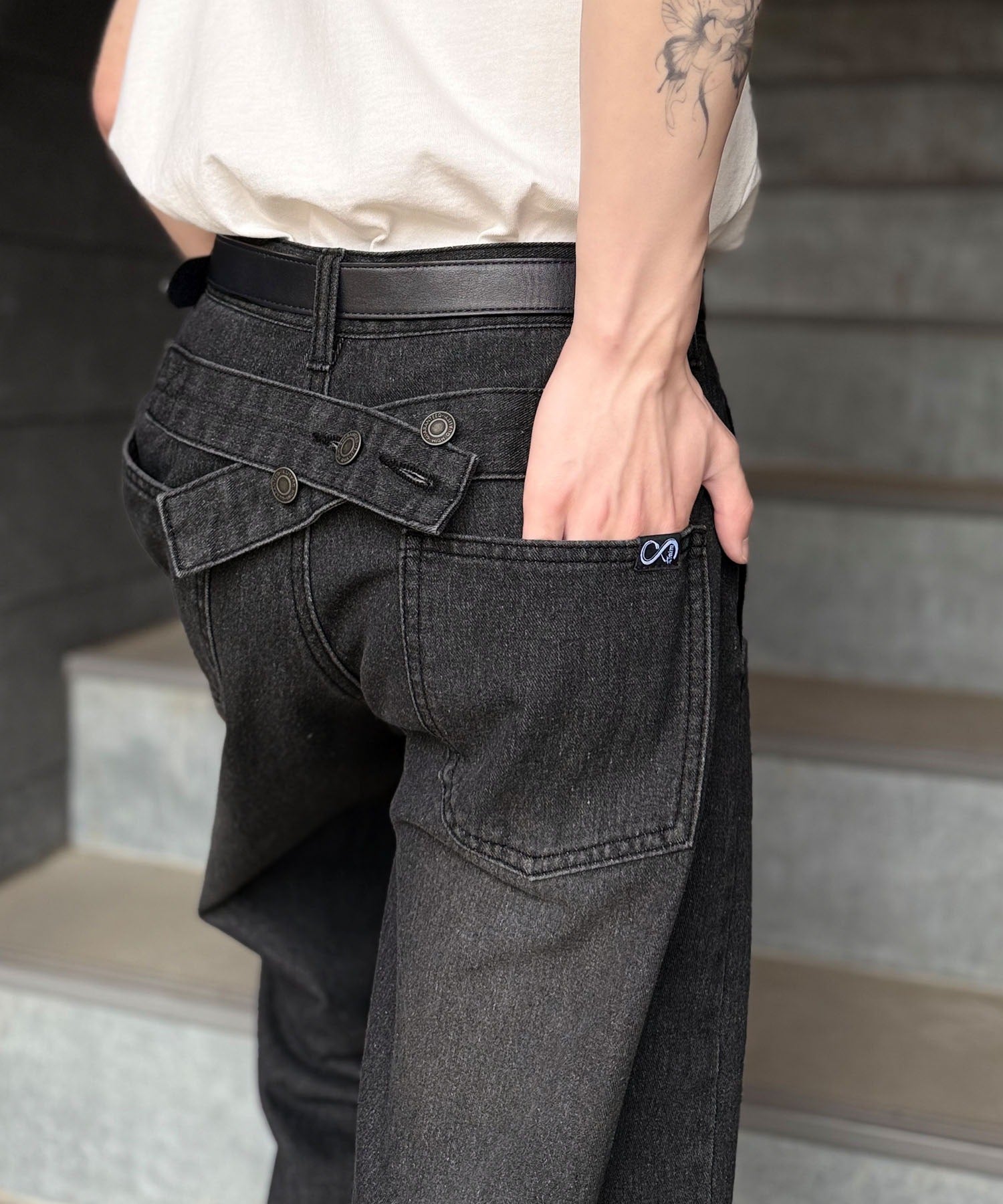 「 Buttoned Strap DesignWide Denim/ ボタン付きストラップデザイン ワイドデニム」