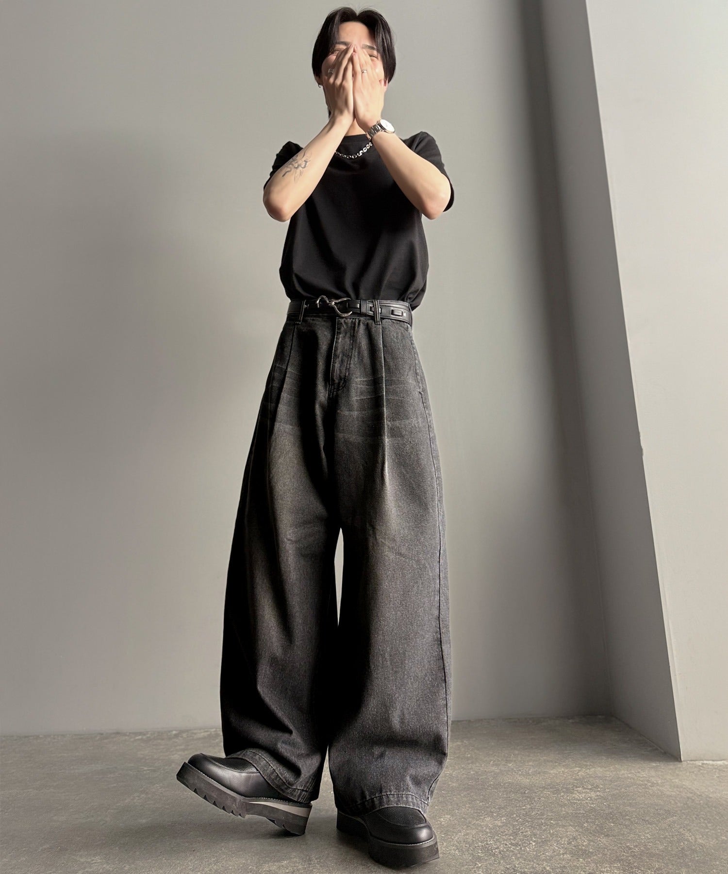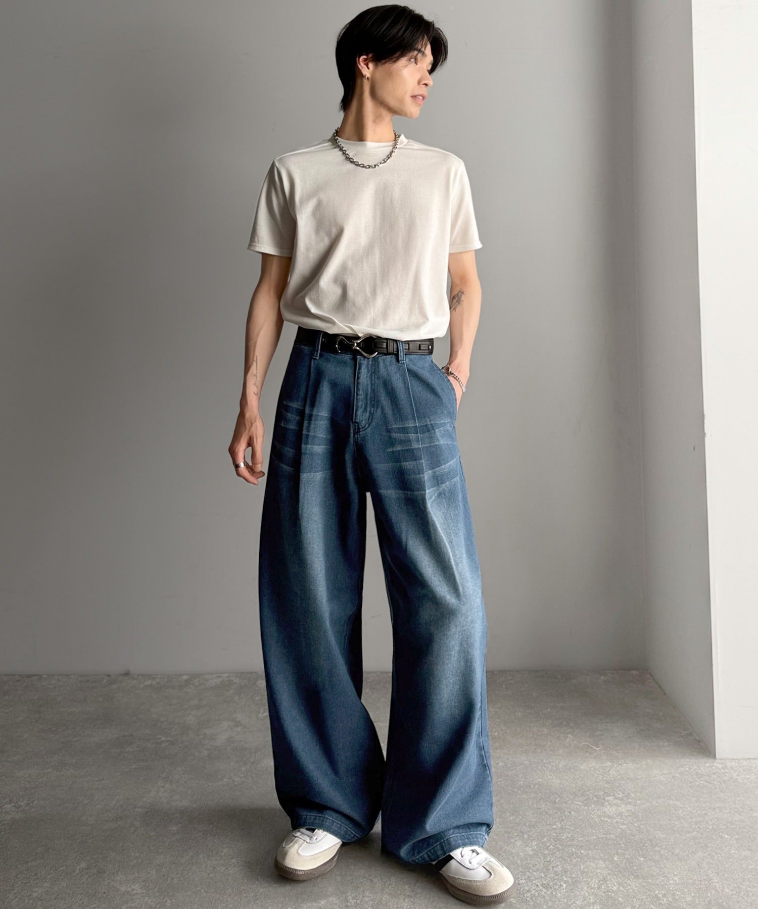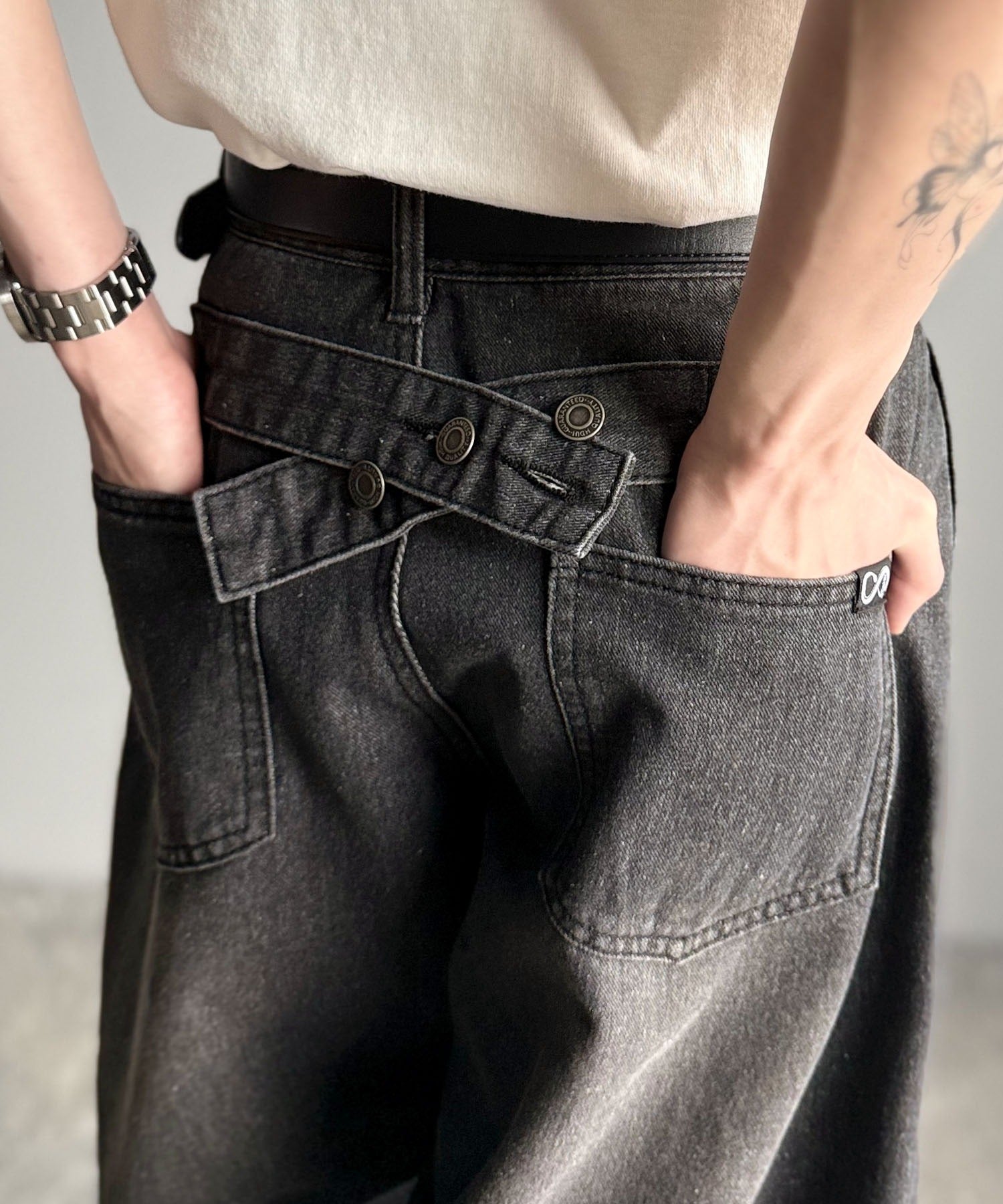 《Haruto×クラシカルエルフコラボ》ストリート映え抜群。履くだけで流行の先端に。ボタン付きストラップデザインワイドデニム/Buttoned Strap DesignWide Denim co1010016