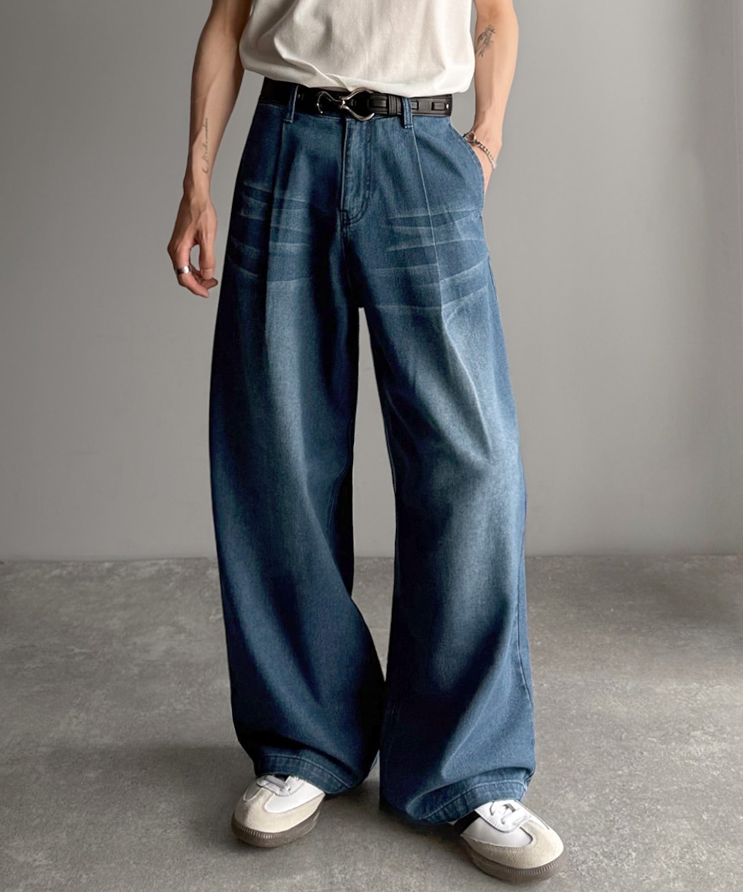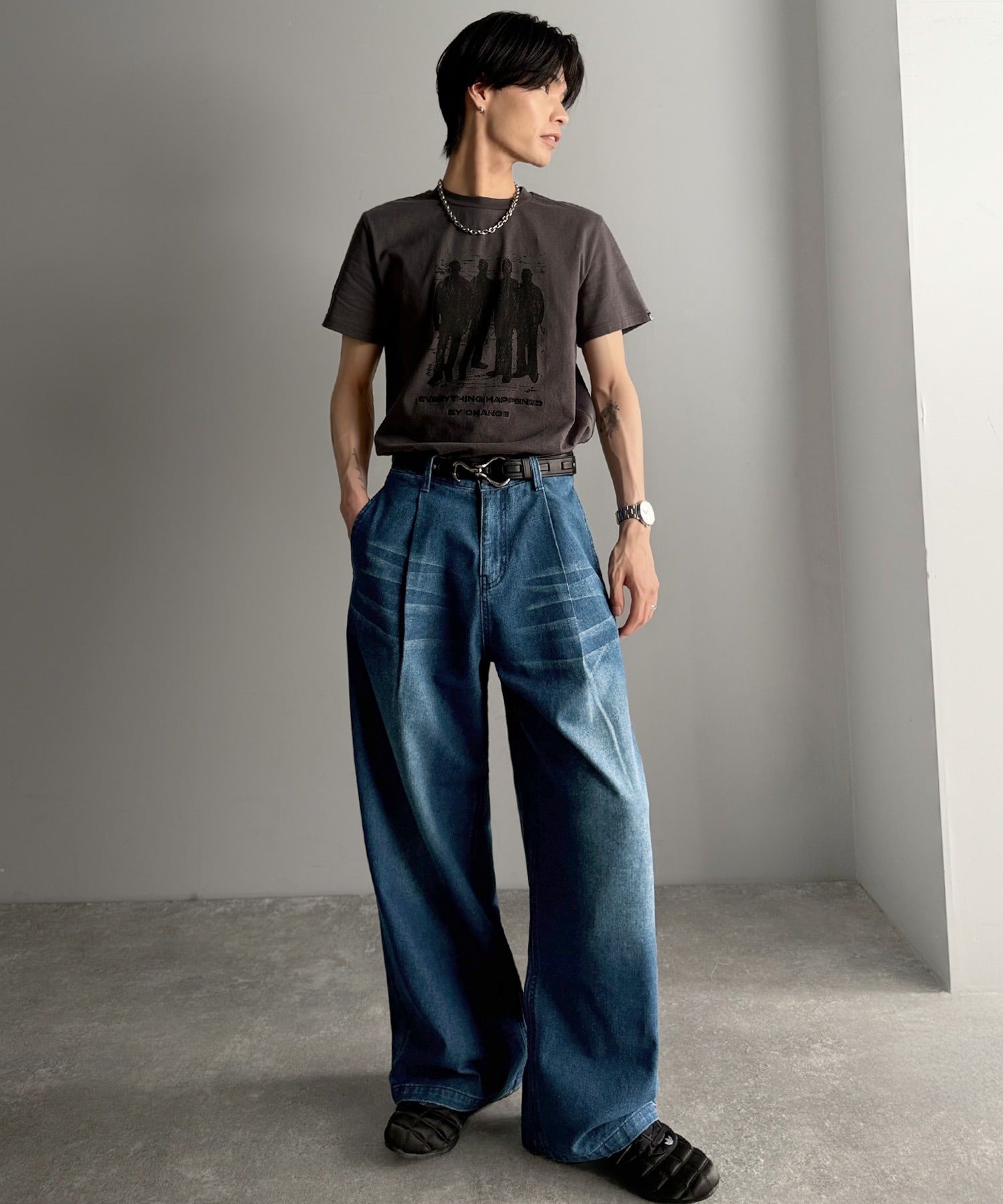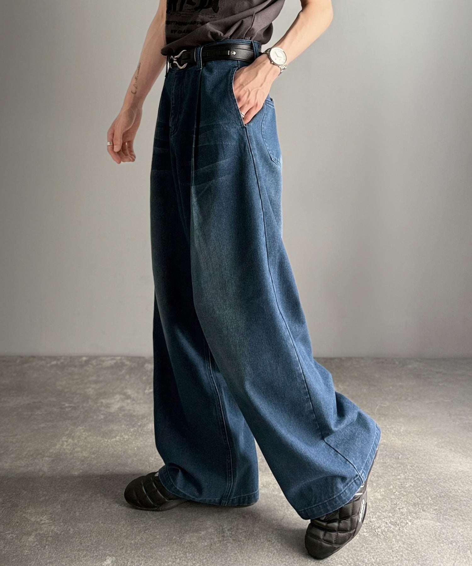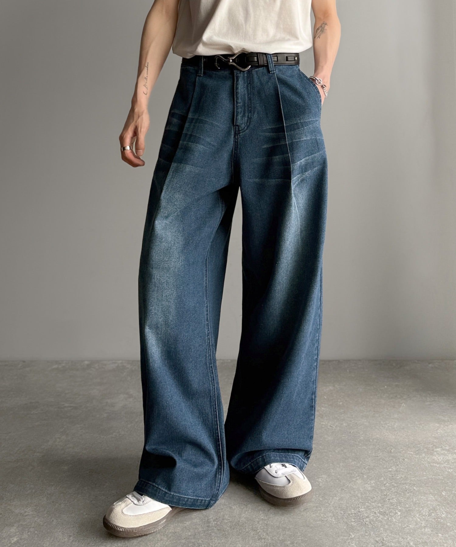 《Haruto×クラシカルエルフコラボ》ストリート映え抜群。履くだけで流行の先端に。ボタン付きストラップデザインワイドデニム/Buttoned Strap DesignWide Denim co1010016