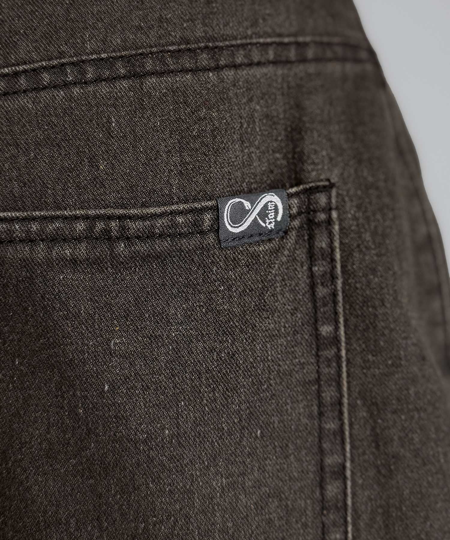 バックポケットにはさりげないピスネーム入りで、ブランドらしい遊び心も。