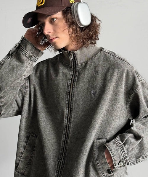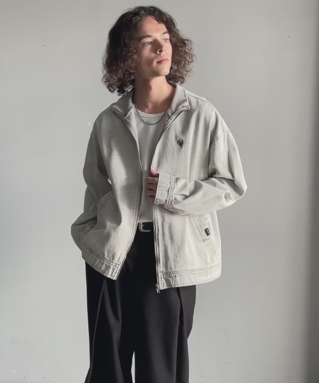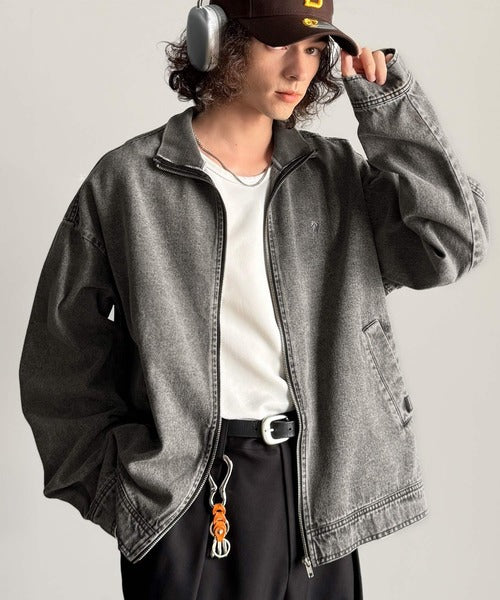 【Classical Origin】Vintage-Washed High-Neck Denim Jacket/ヴィンテージ加工ハイネックデニムジャケット co1010029