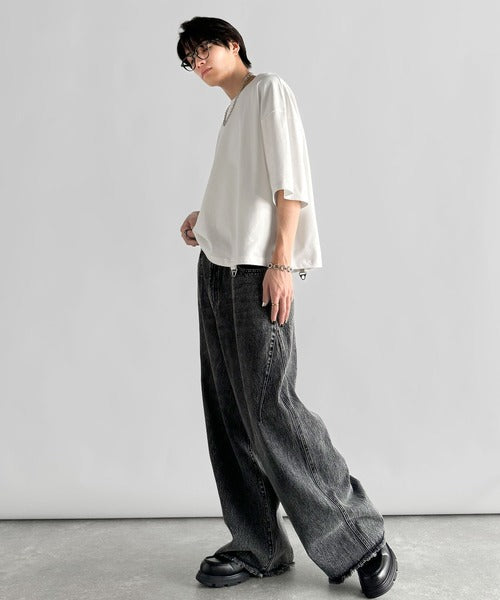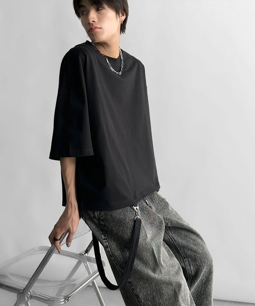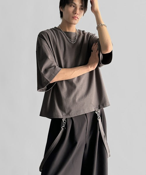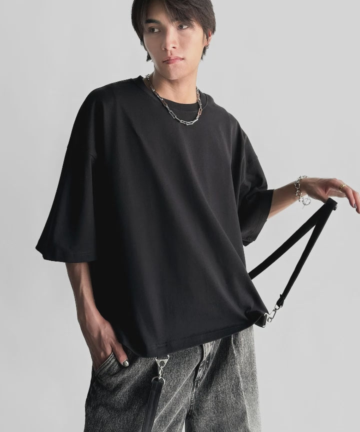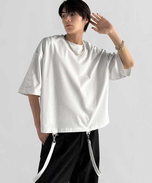 「垂らすだけで差別化。」脱着式ベルトデザインショート丈Tシャツ/Belt Design Transformable Cropped T-Shirt co1150015