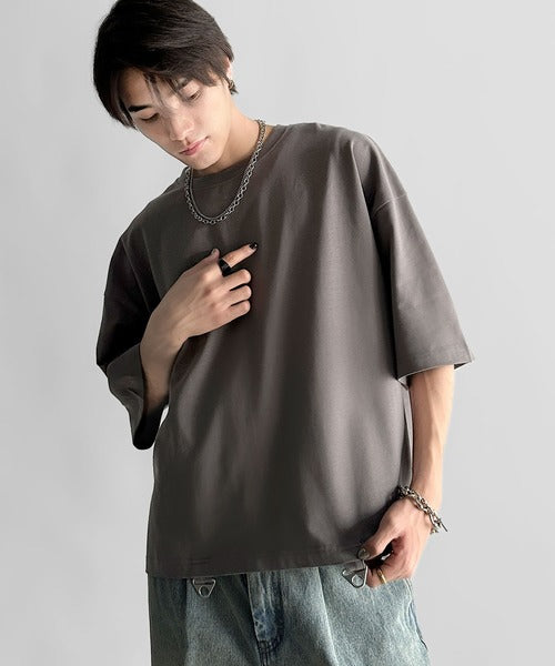 綿100%の26/2天竺素材に生地洗い加工を施し、柔らかな風合いを実現。