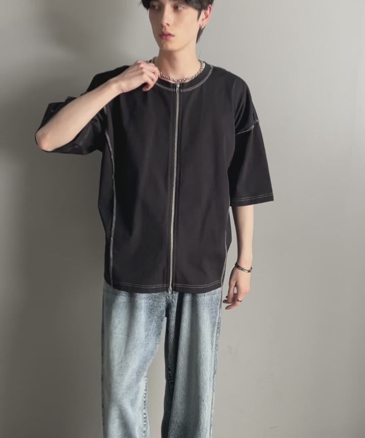【Classical Origin】「1枚でも羽織でも。」インサイドアウト仕様2wayダブルジップTシャツ/Inside-Out Oversized Double-Zip 2way Jacket T-Shirt co1150018