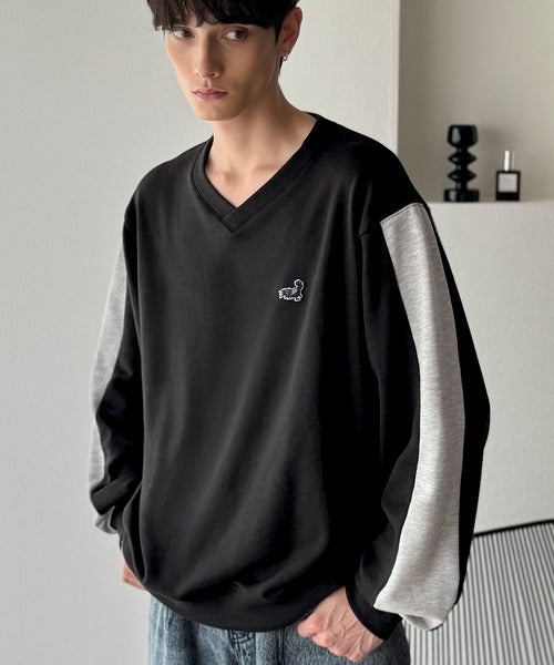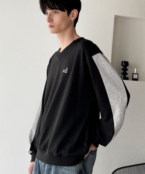 【Classical Origin】「個性をアクセントに。」袖ライン配色Vネックスウェットトレーナー(長袖)/Color Blocked Sleeves V-Neck Sweat Trainer co1150044