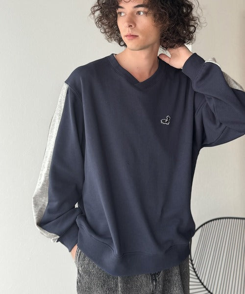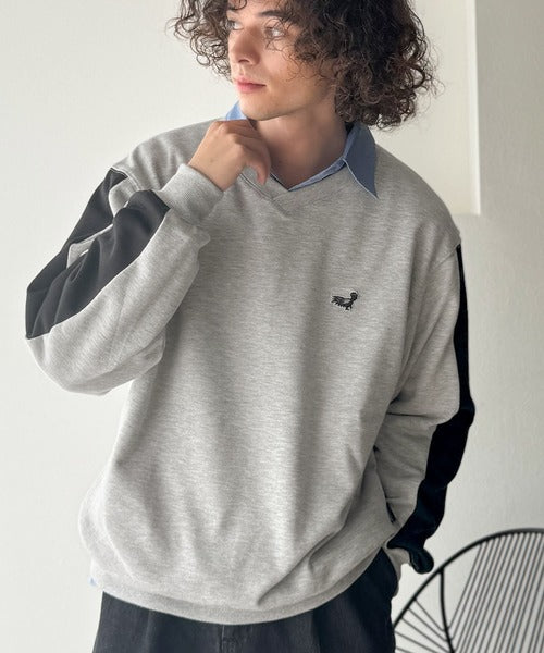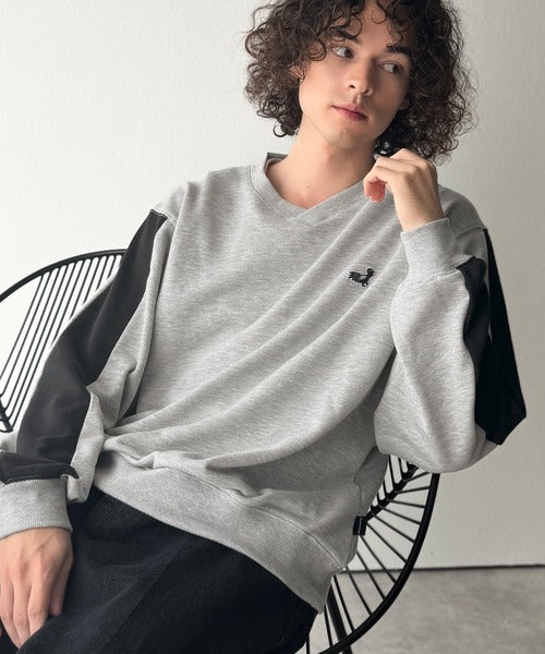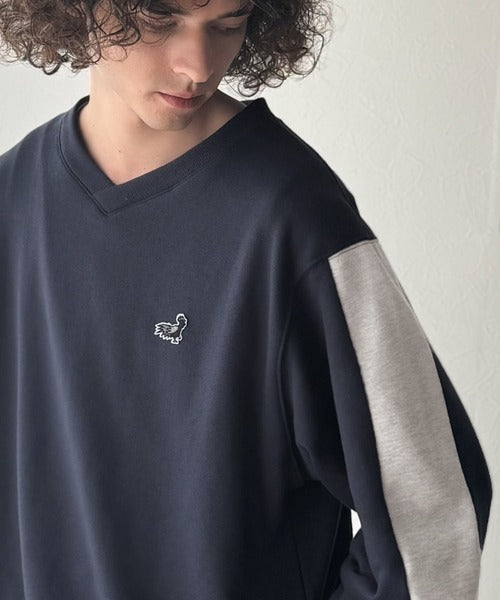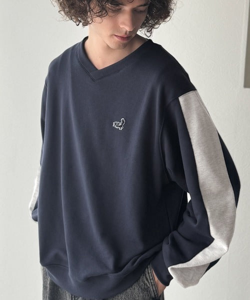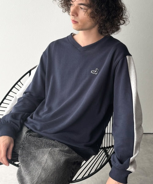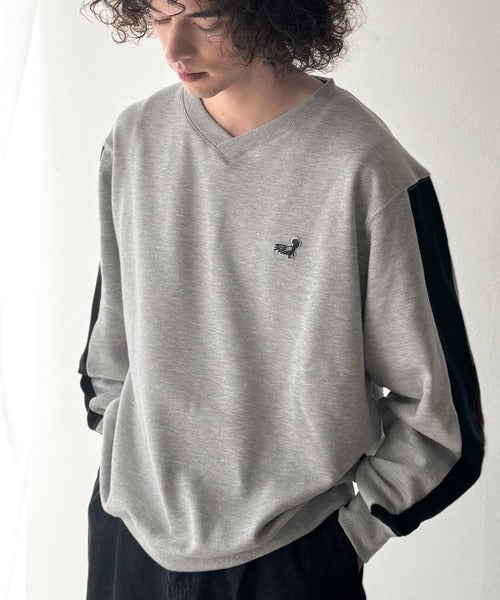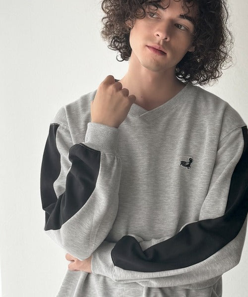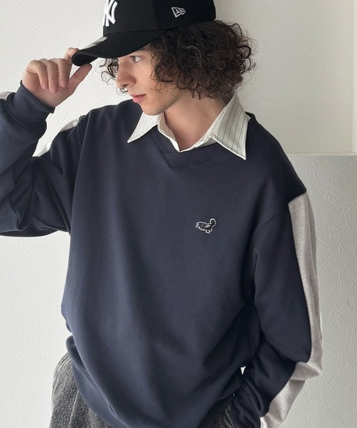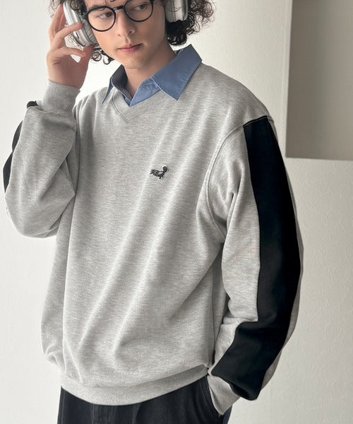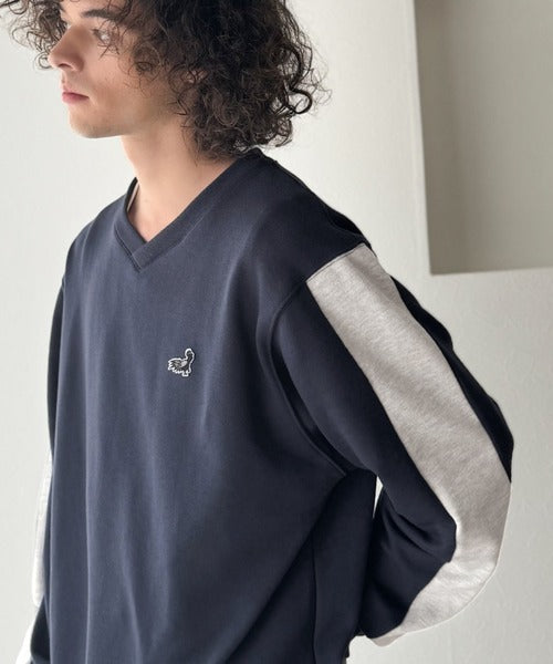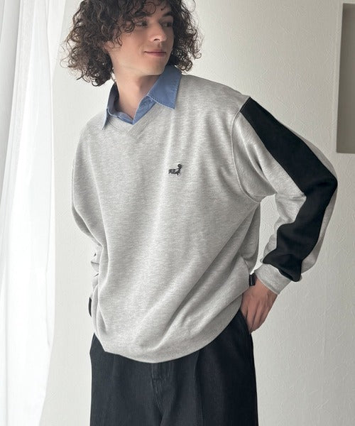 「Color Blocked Sleeves V-Neck Sweat Trainer/袖ライン配色Vネックスウェットトレーナー」。