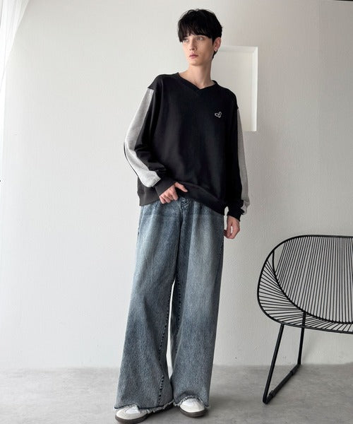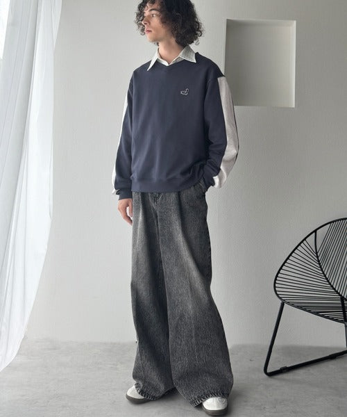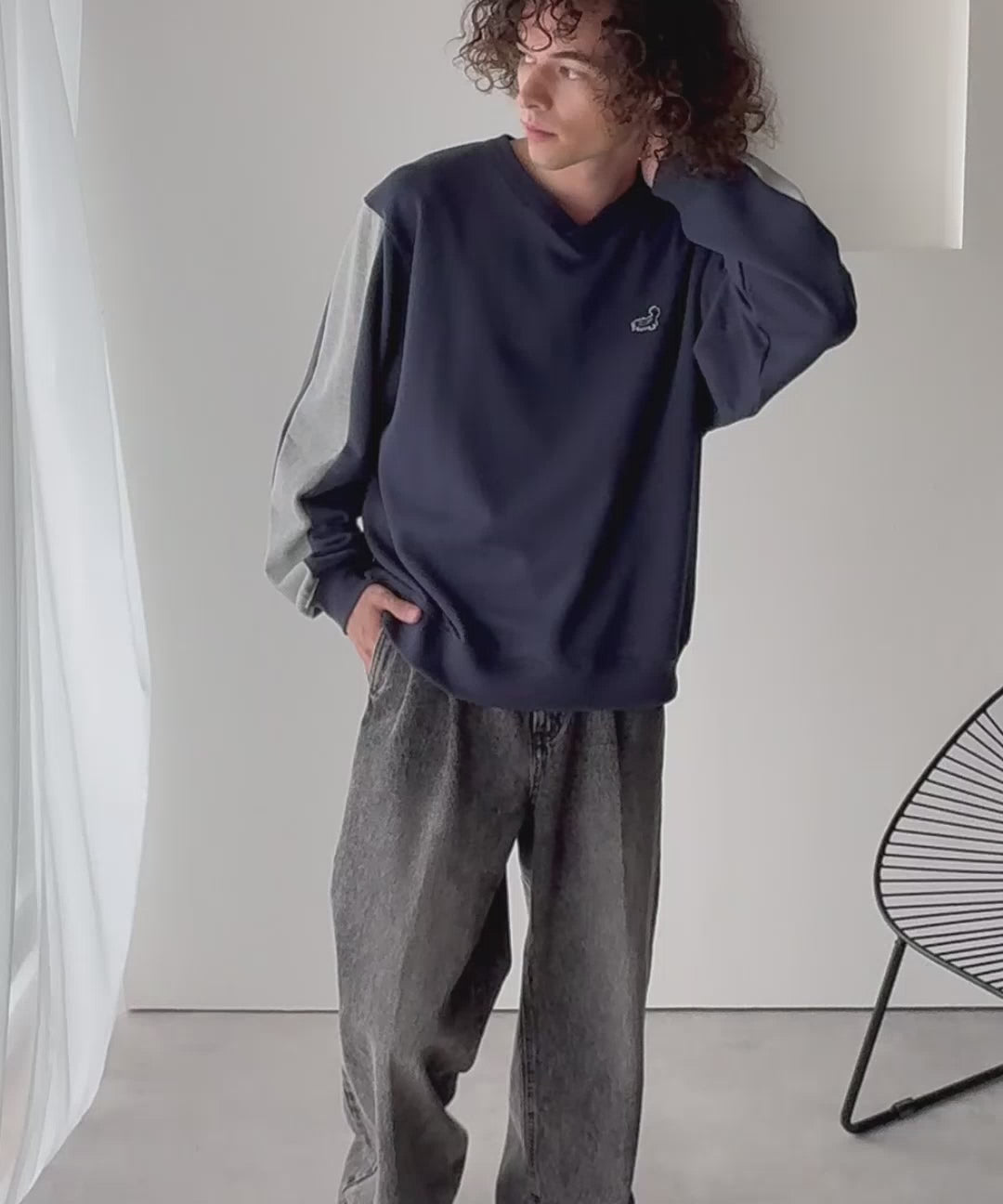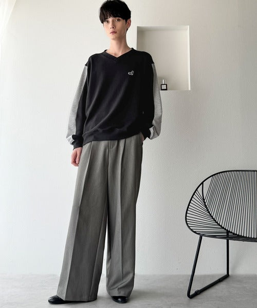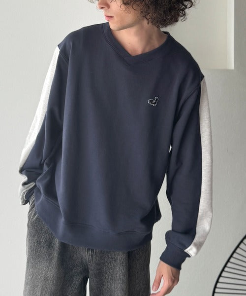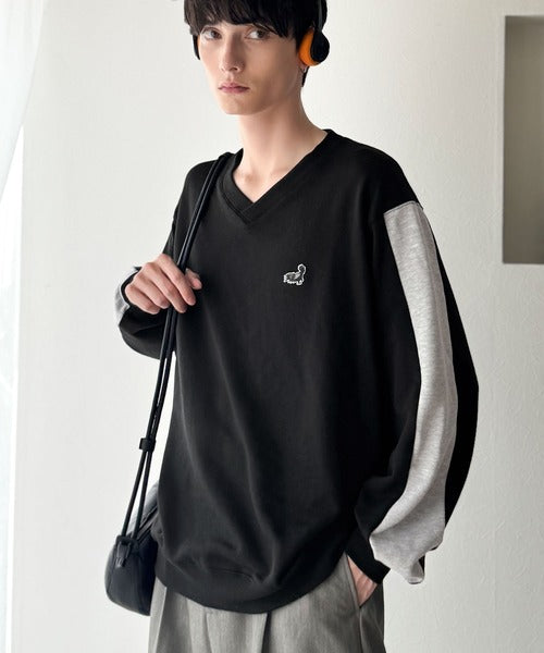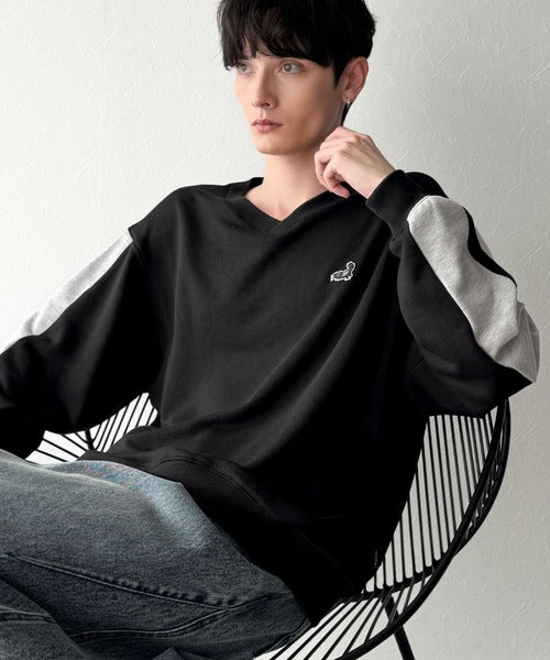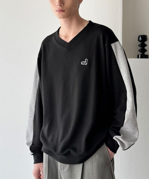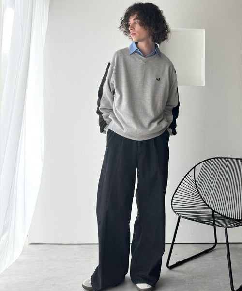 「Color Blocked Sleeves V-Neck Sweat Trainer/袖ライン配色Vネックスウェットトレーナー」。