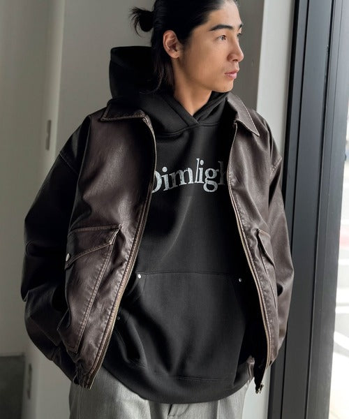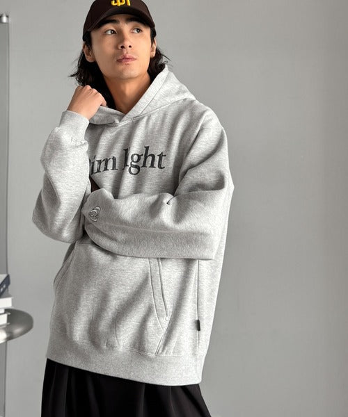 裏起毛ロゴ&スタッズ使いプルパーカー」