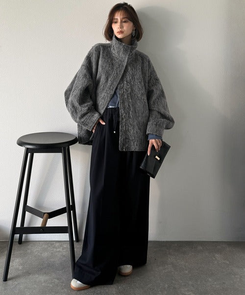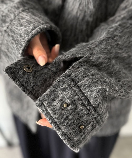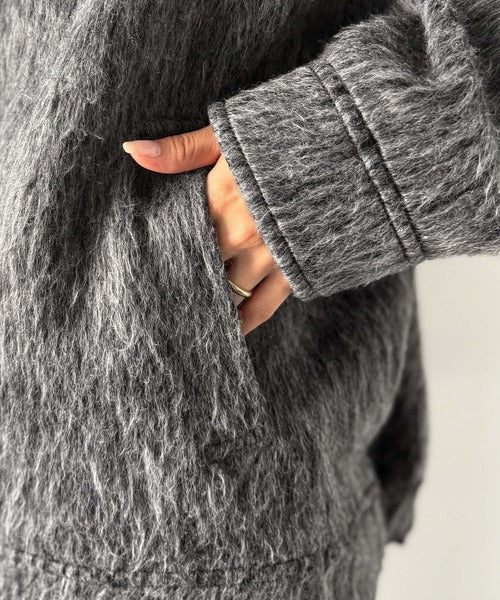 柔らかな毛足のある素材が、やさしく上品な印象を引き立てながら、しっかりとした暖かさも兼ね備えた、この秋冬にぴったりの1枚。
