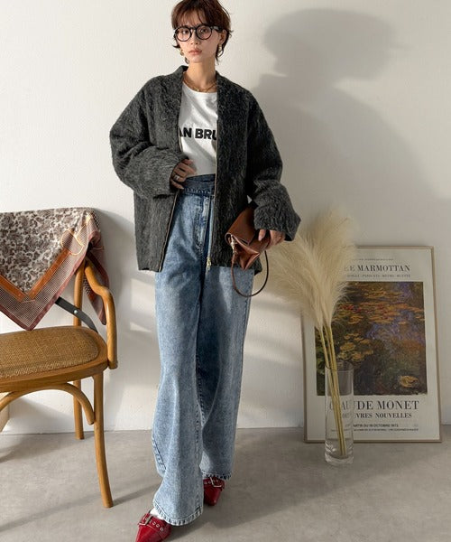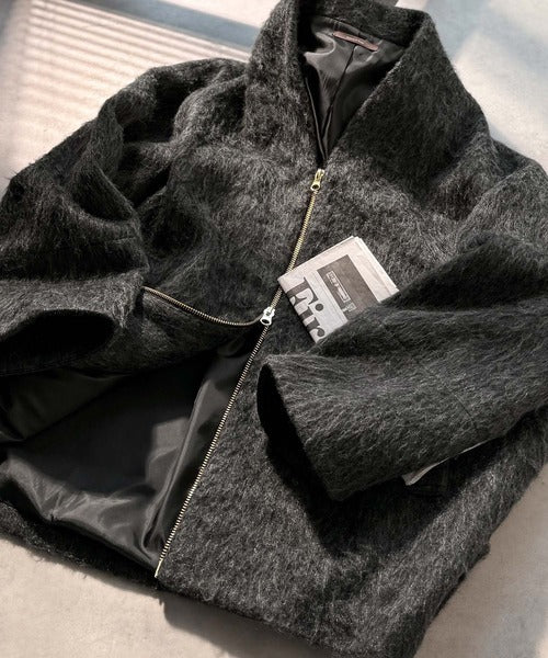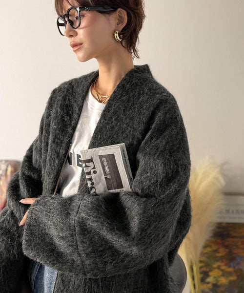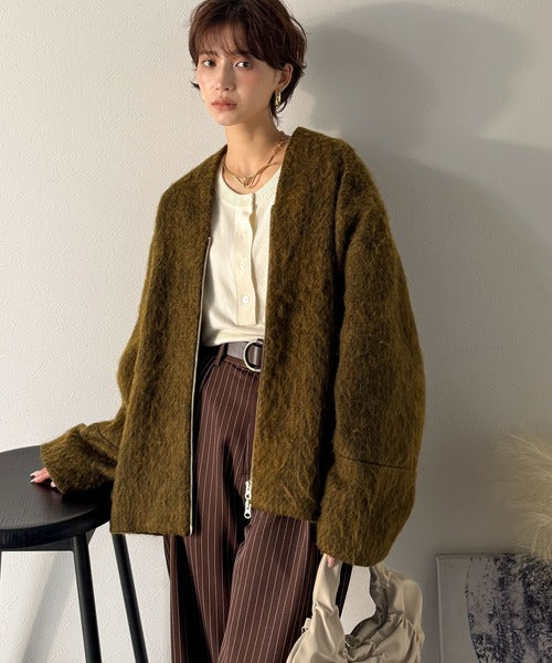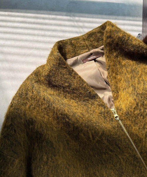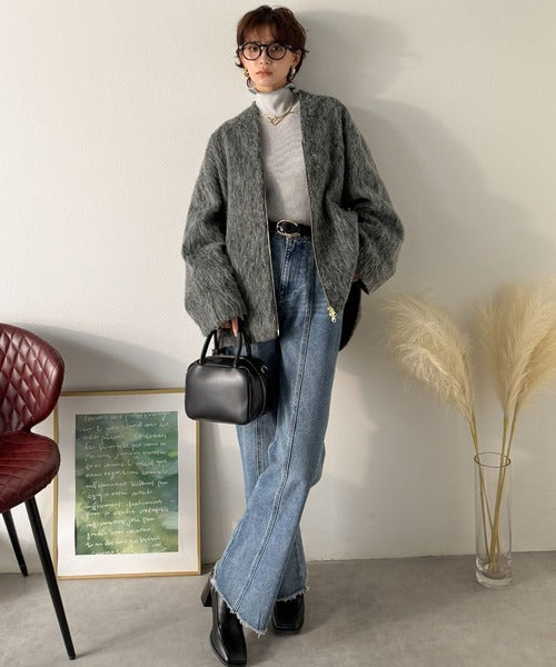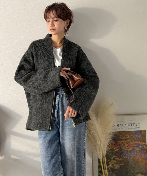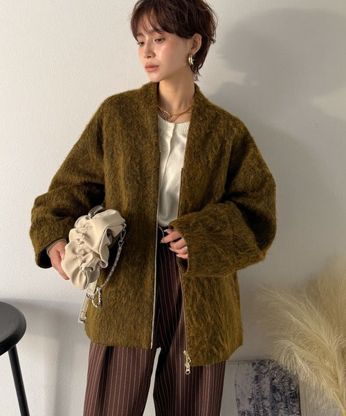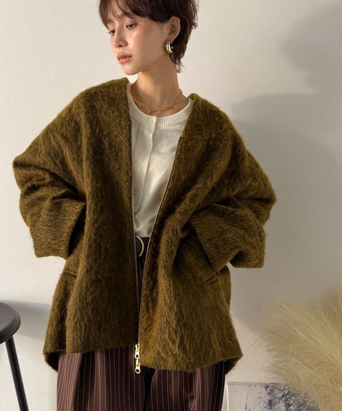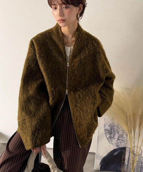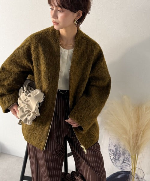 柔らかな毛足が高級感と保温性を兼ね備え、上下から開くダブルジップが抜け感を演出。