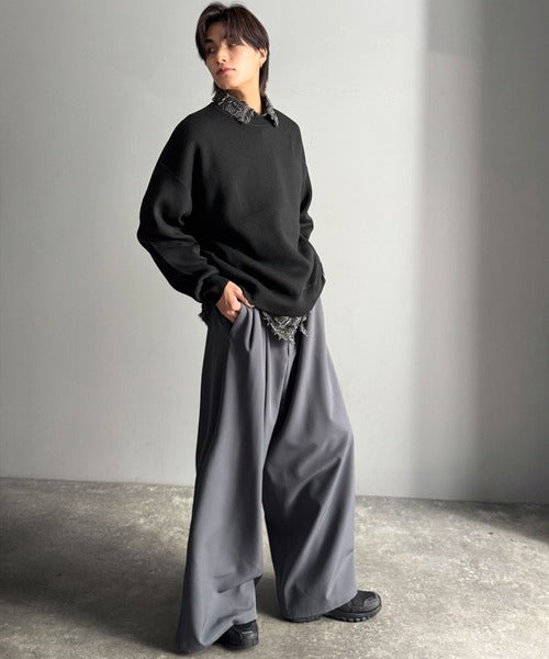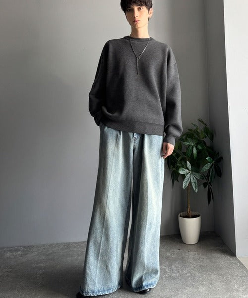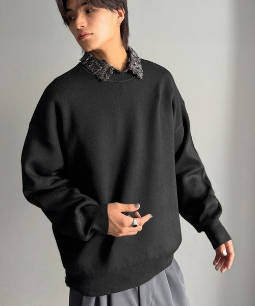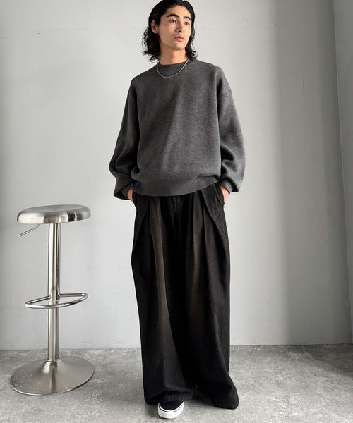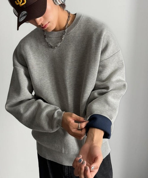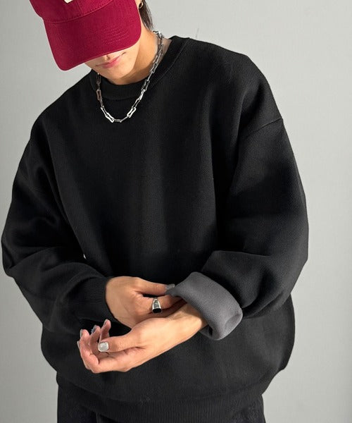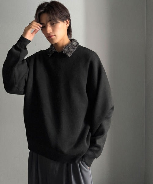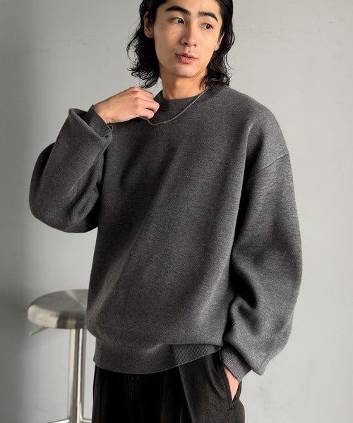 スウェットのような見た目とニットの上品さを併せ持つ一枚。