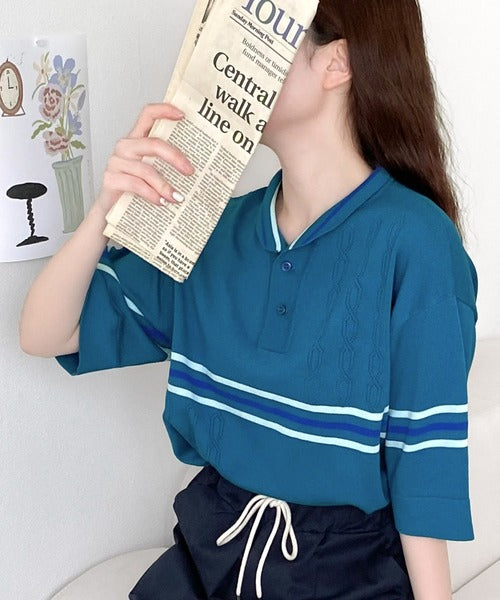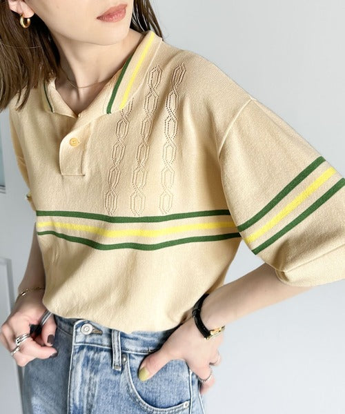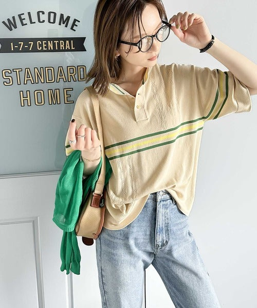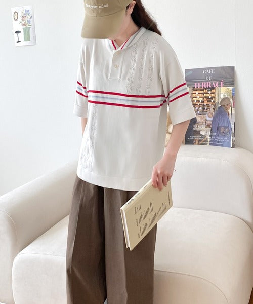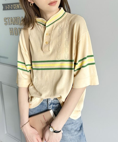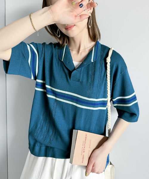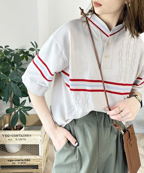 《JAVAジャバ 別注》大人のヴィンテージライク。レトロボーダーニットトップス jm1050112