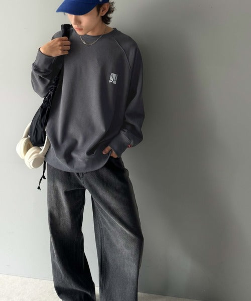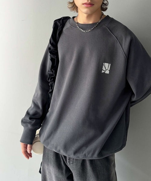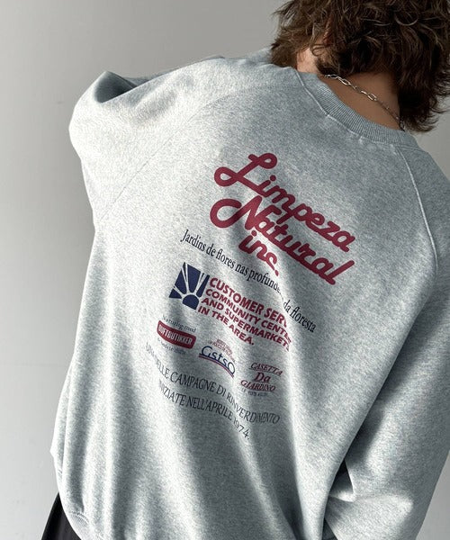 こなれ感のあるオーバーサイズに仕上げたプリントスウェットプルオーバー。