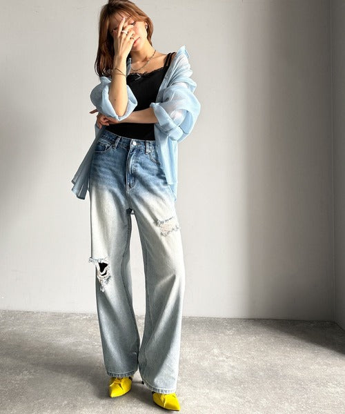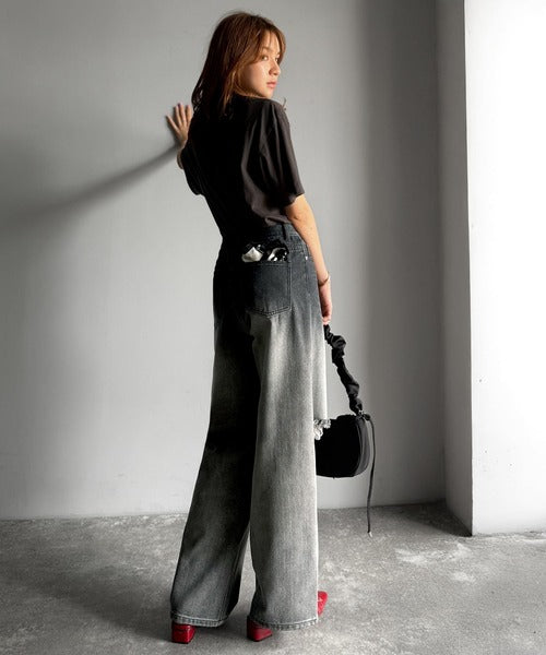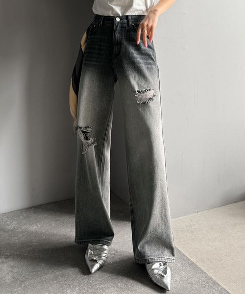 《JaVaジャバコラボ》360度こなれる、2トーンブリーチの魔法。2トーンブリーチ切り替えダメージワイドデニム jv0909007
