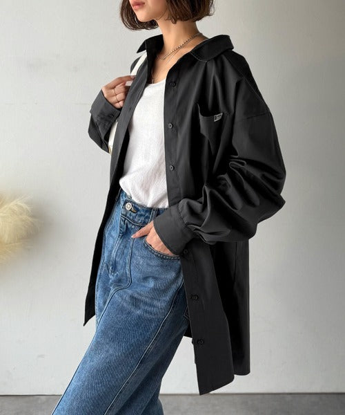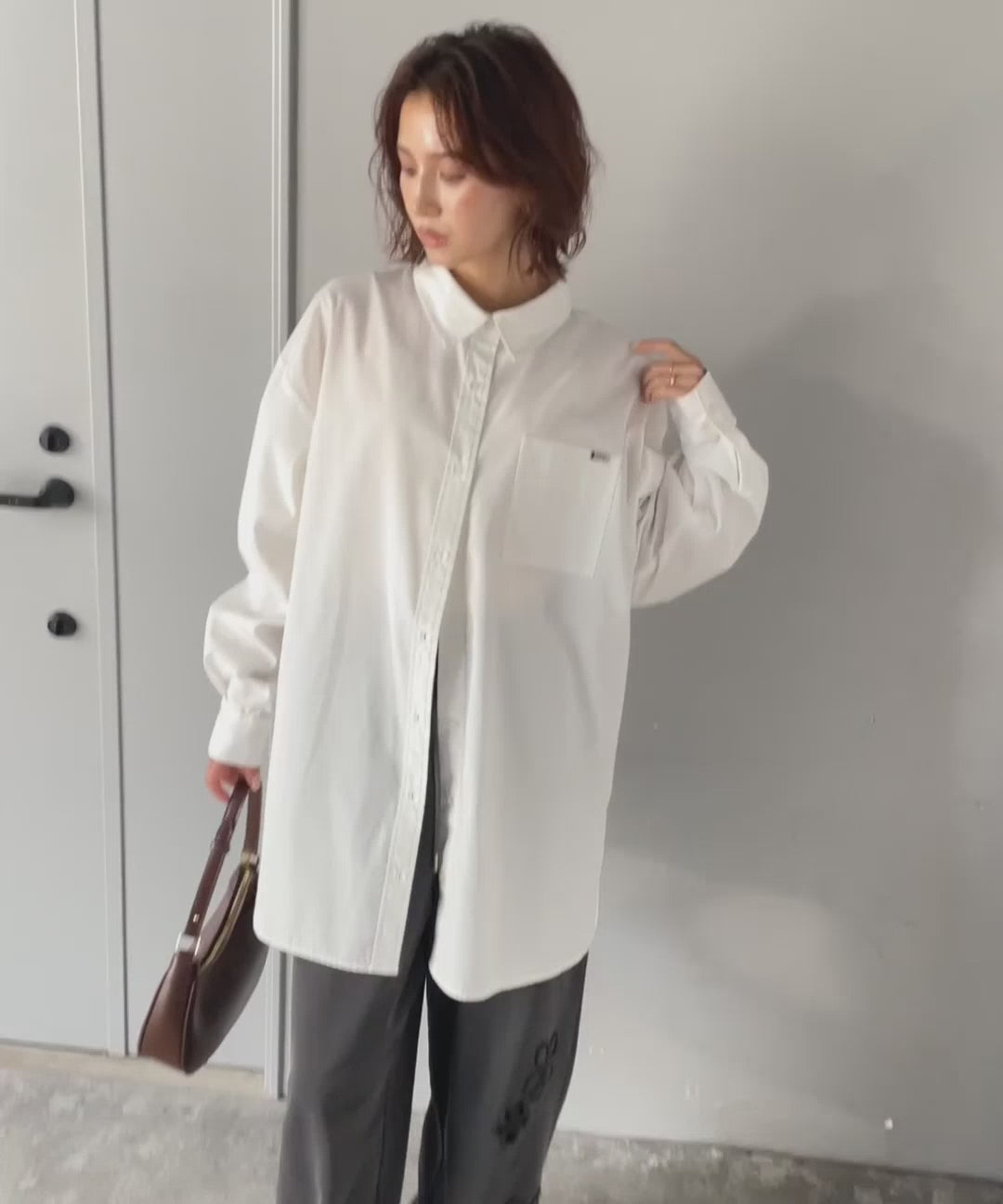 程よいハリとコシをもたせた素材を使用しているので、着た瞬間にシルエットがきれいに決まりやすいビッグシャツ。