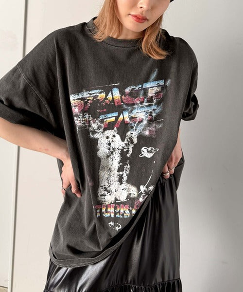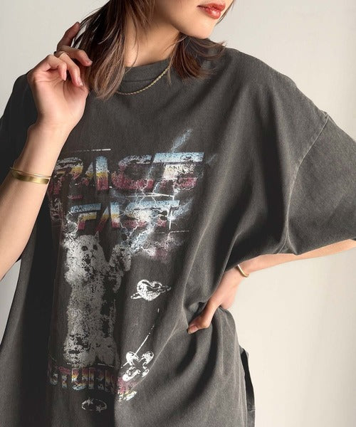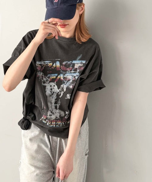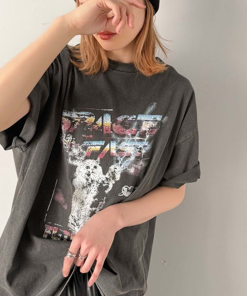 こなれ感のあるオーバーサイズに仕上げたプリントTシャツ。