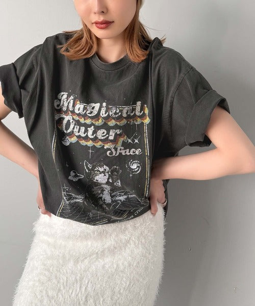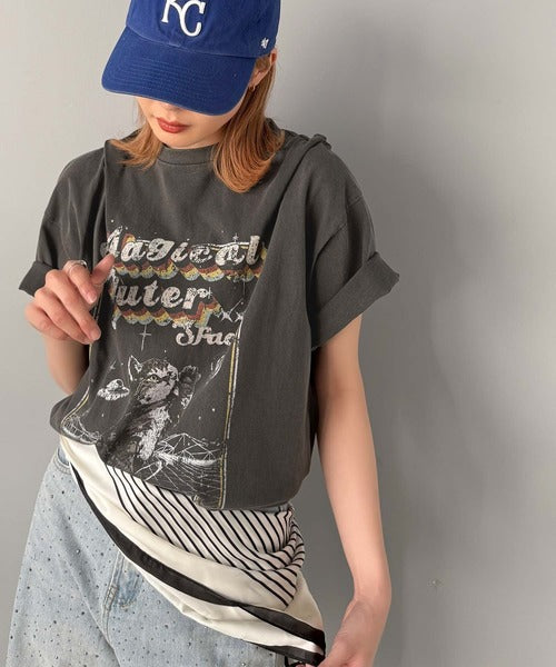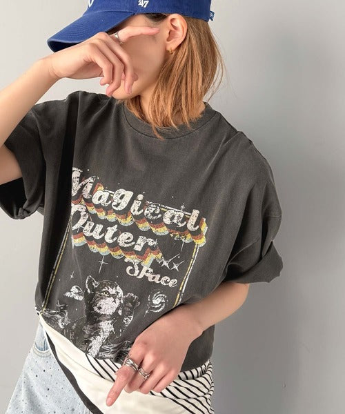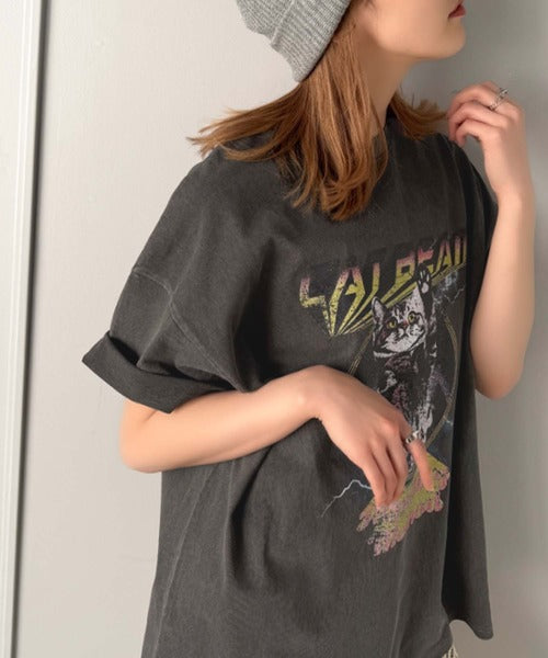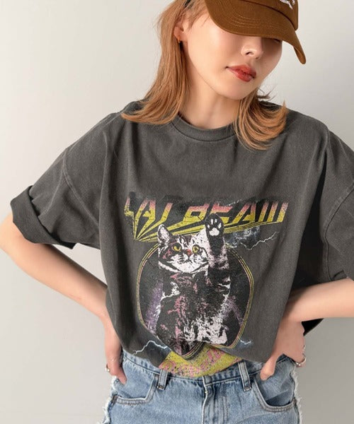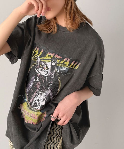ヴィンテージライクな風合いが今っぽいキャットプリントTee。
