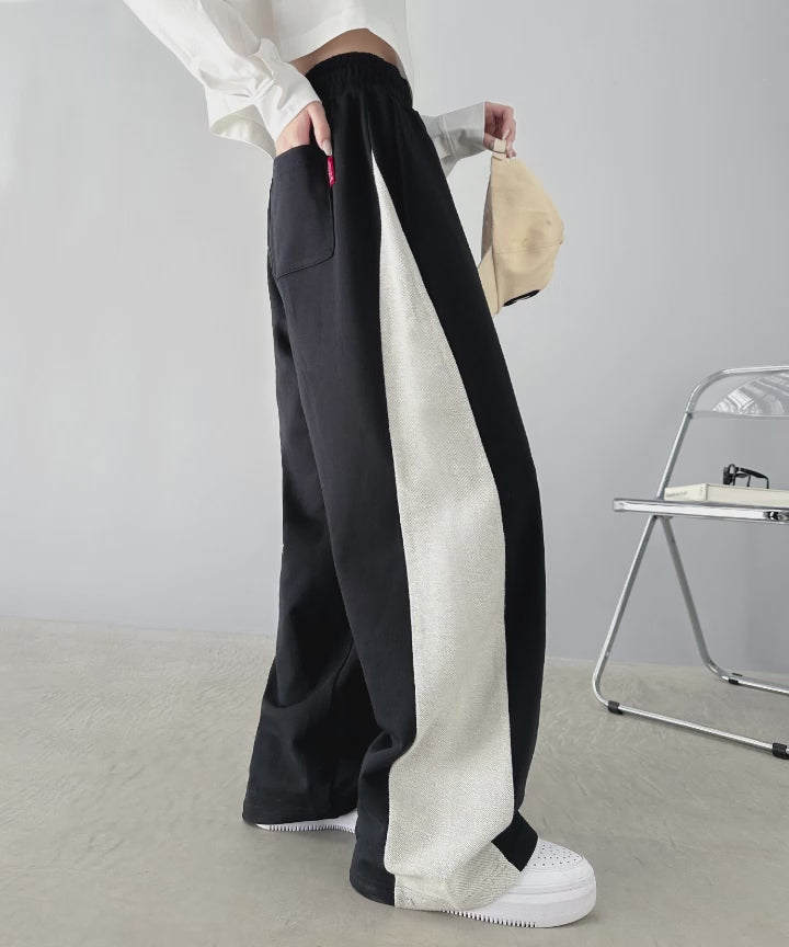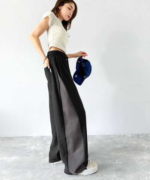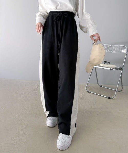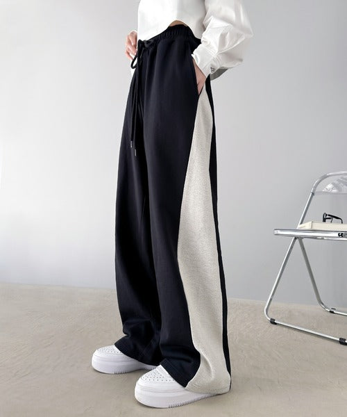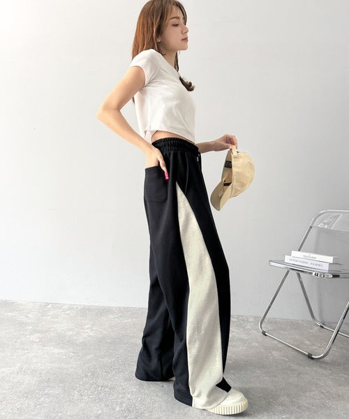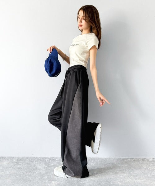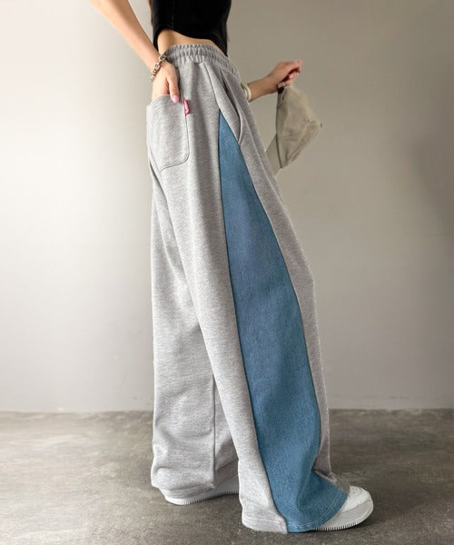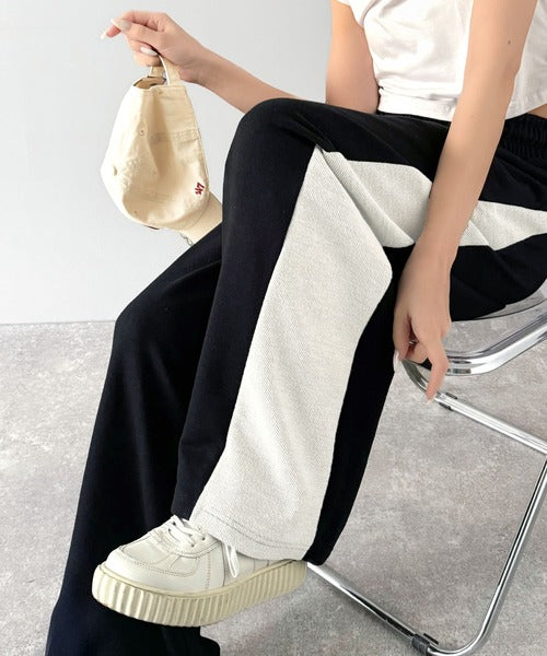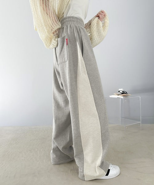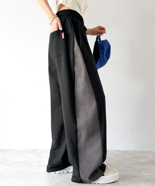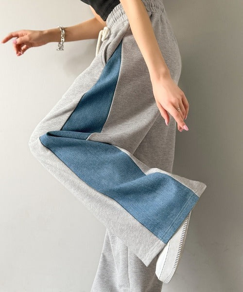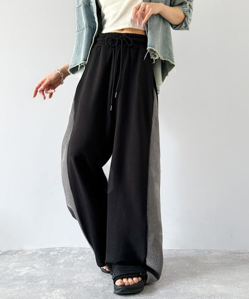 サイドの切り替えが目を惹くデザインスウェットパンツ。