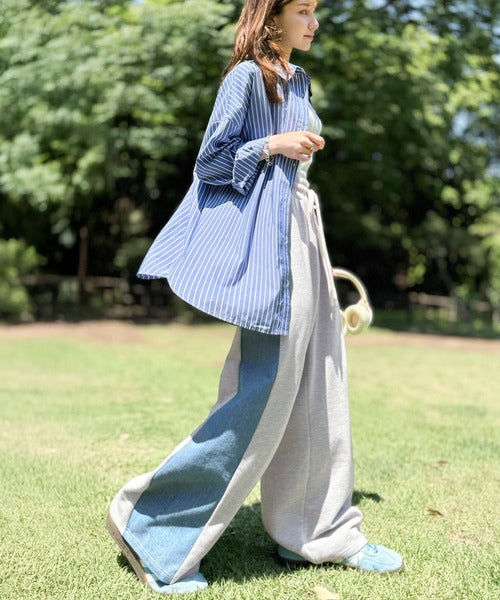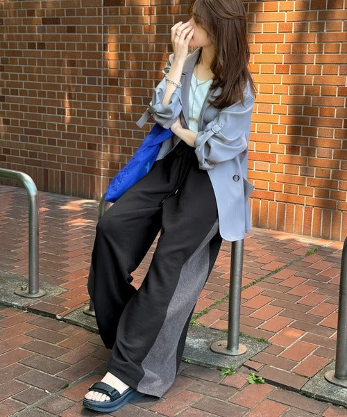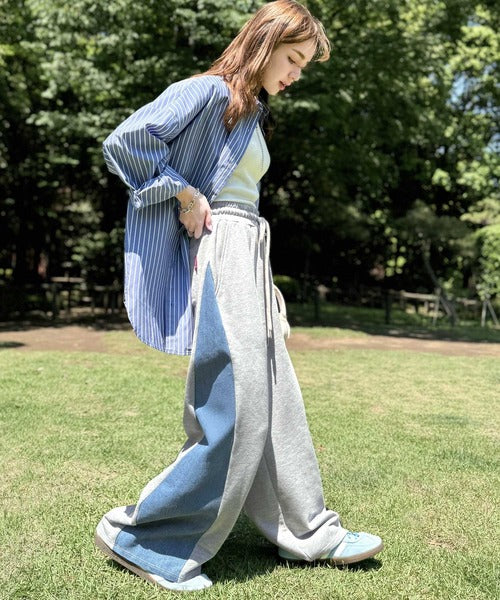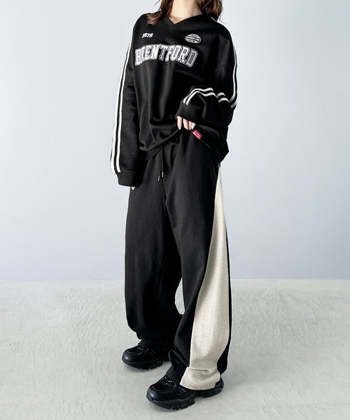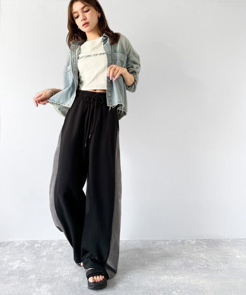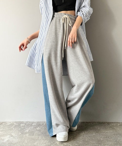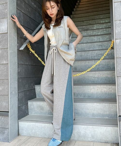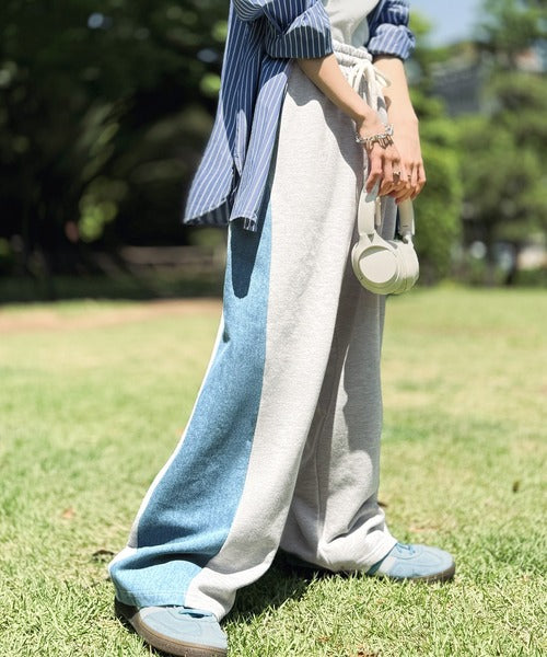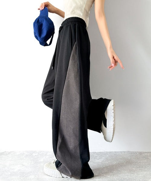 《JaVaジャバ コラボ》ゆるっと穿きこなす。サイド切り替え裏使いスウェットパンツ jv1219016