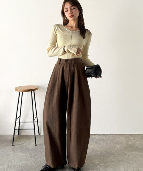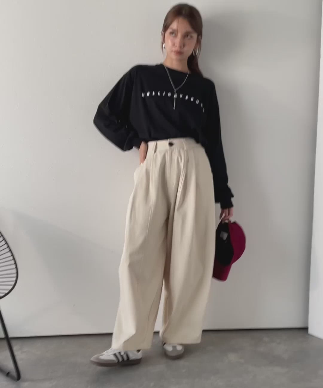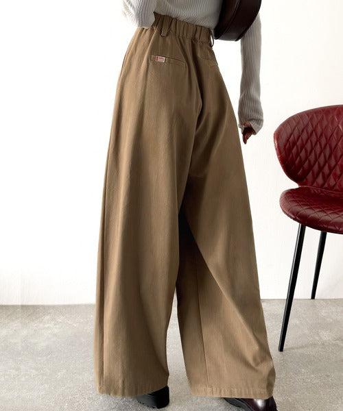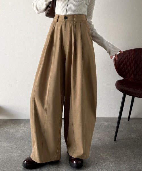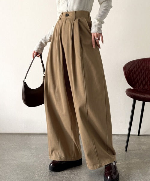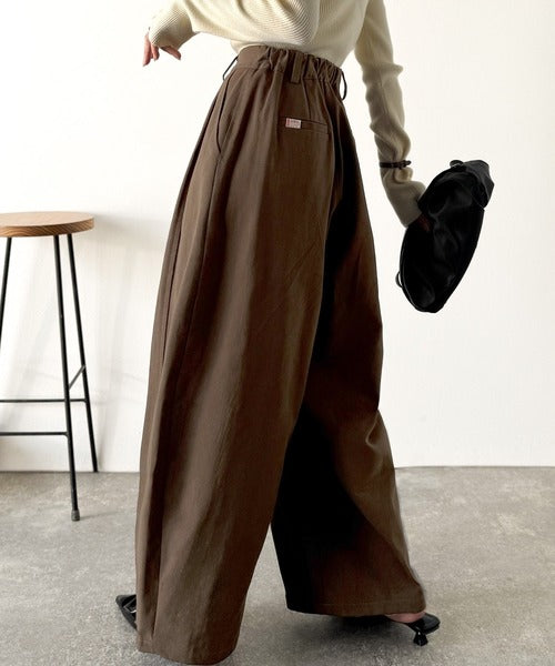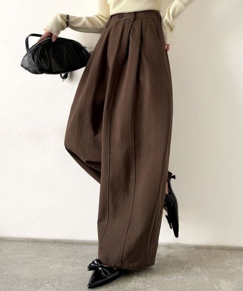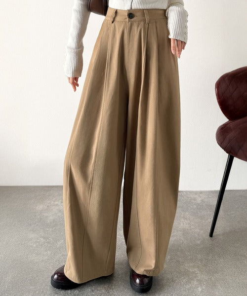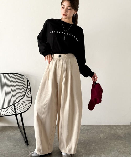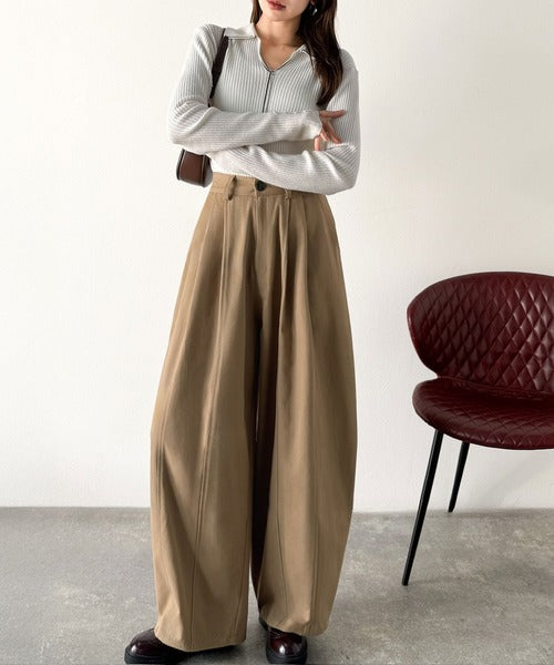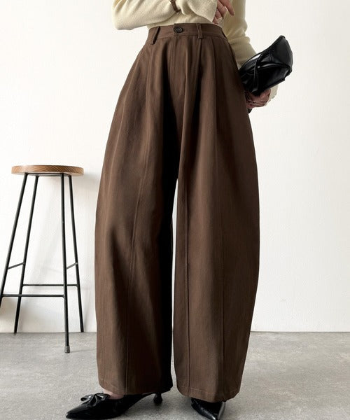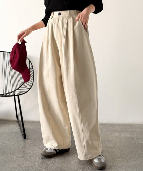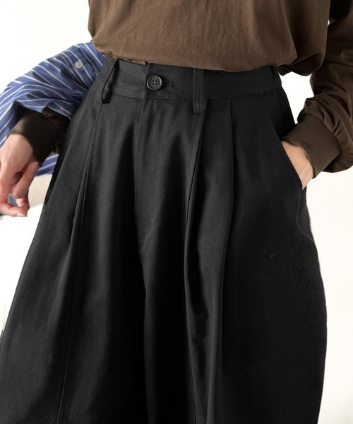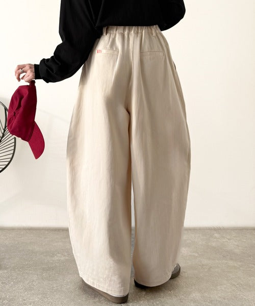 《JaVaジャバコラボ》カーブで魅せる、抜け感シルエット。綿100%コットンツイルバレルレッグタックパンツ jv1240111