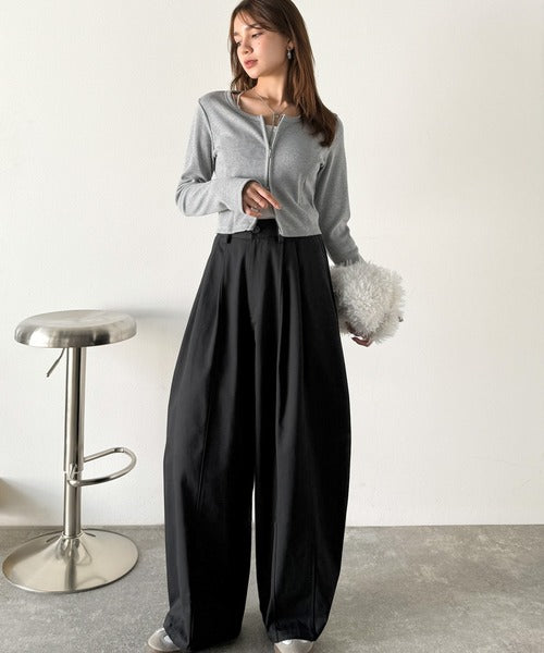 ハイウエストデザインにウエストタック入りで、スッキリとしたシルエットを実現。