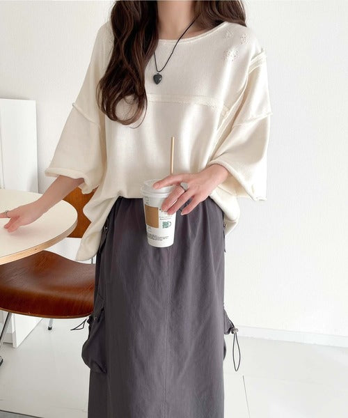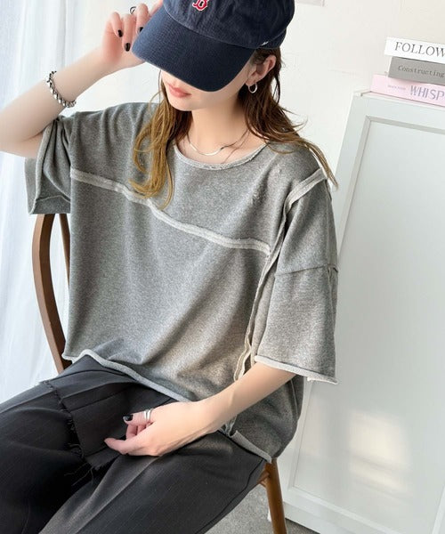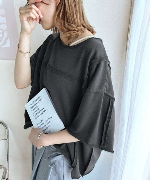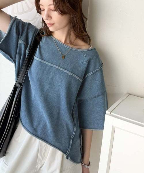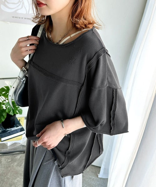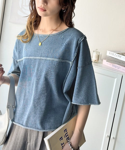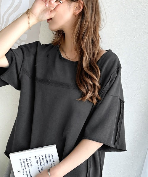 トレンドを味方に。古着のようなカットオフデザイントップス。