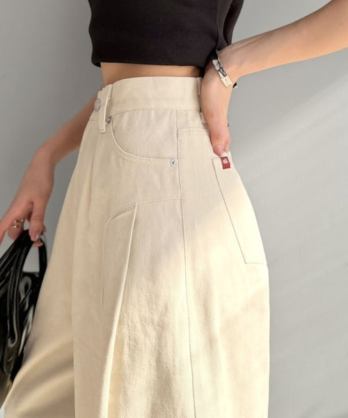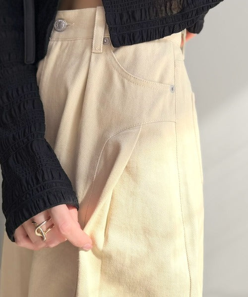 裾に向かってテーパードすることで全体をすっきりとした印象に♪
