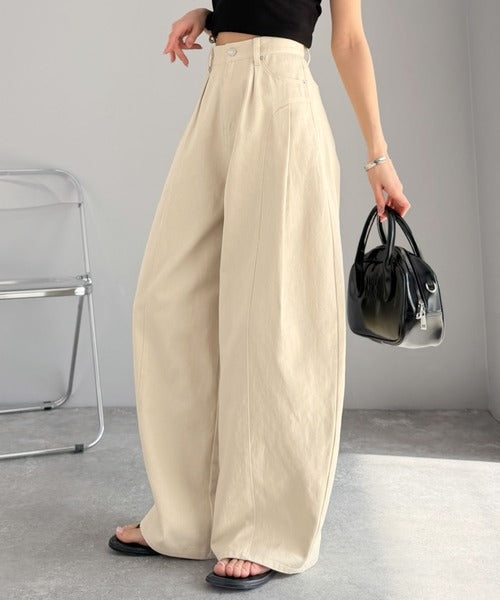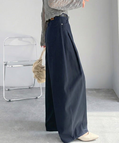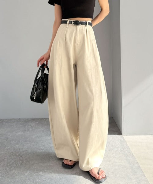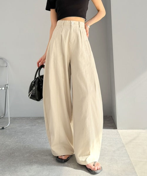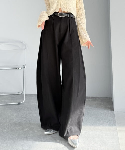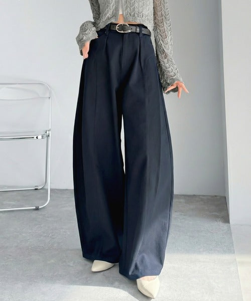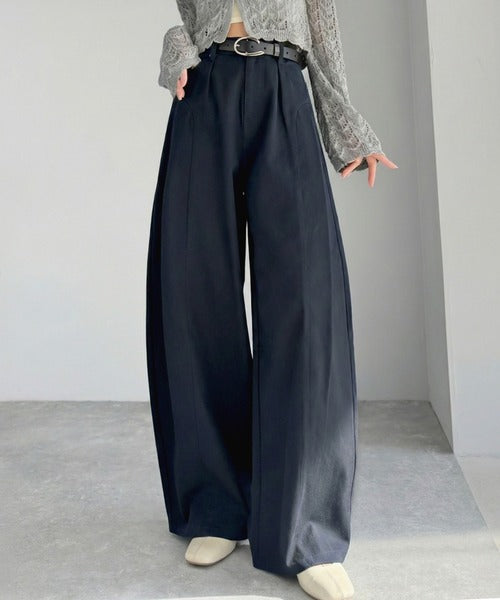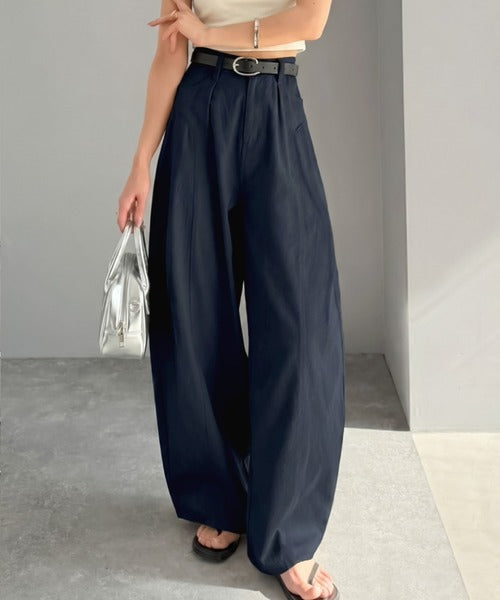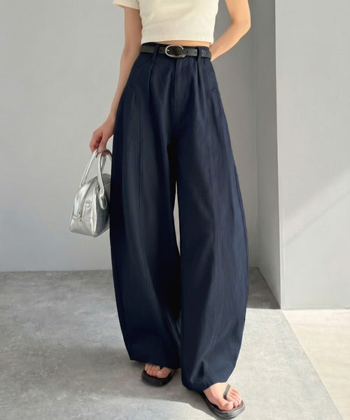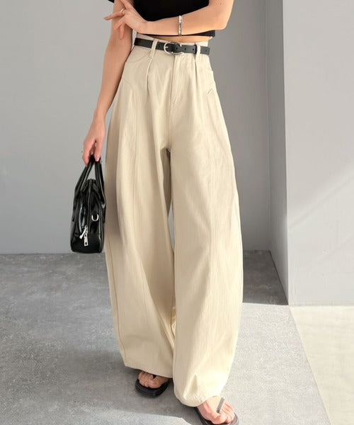 立体感のあるシルエットに仕上げた着回しの効くタックパンツ◎