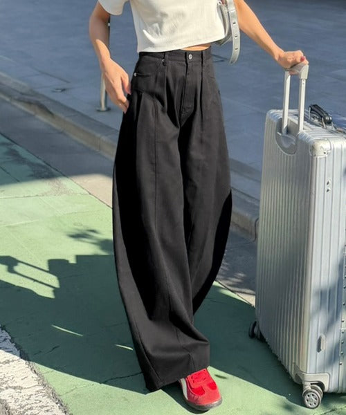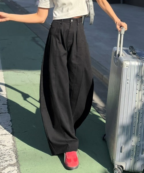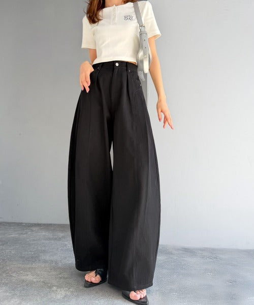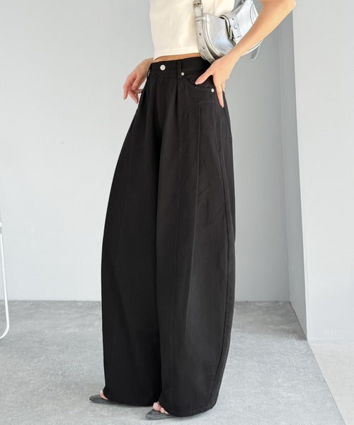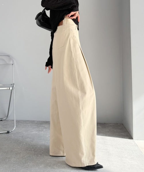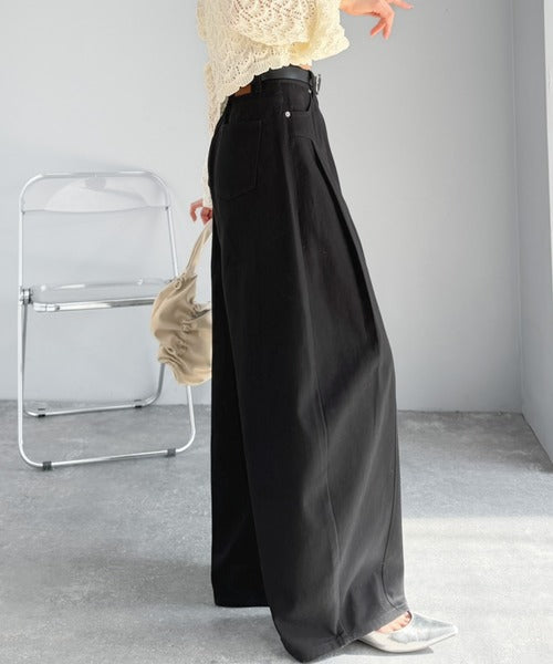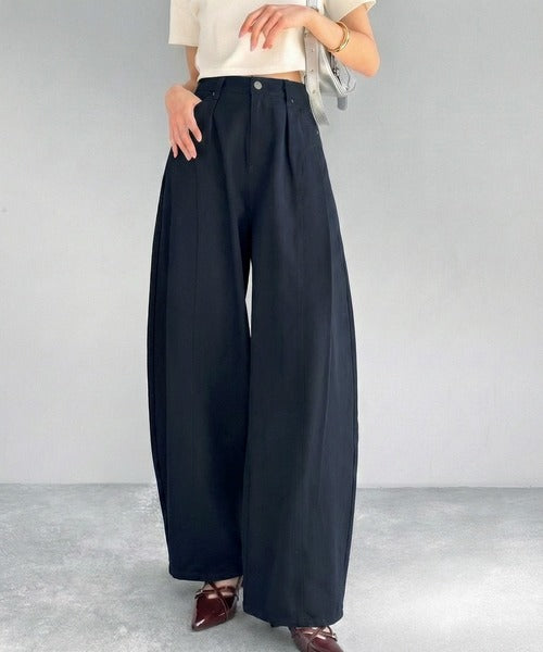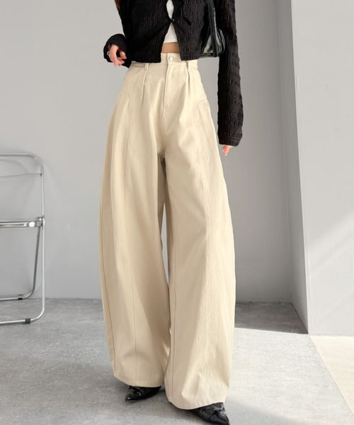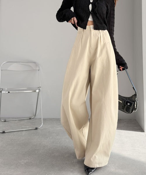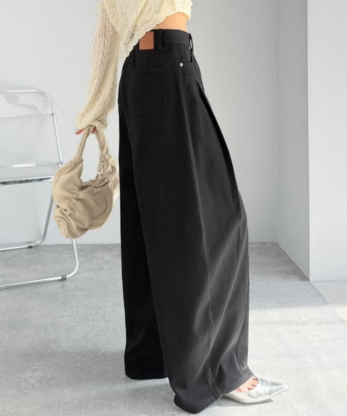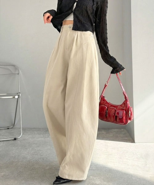 立体感のあるシルエットに仕上げた着回しの効くタックパンツ◎