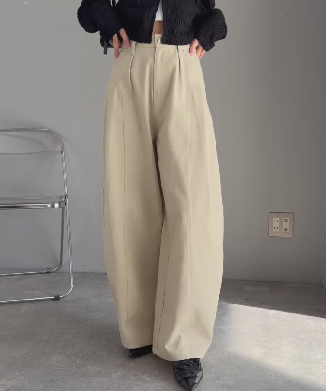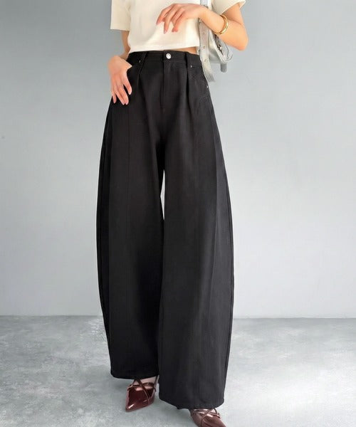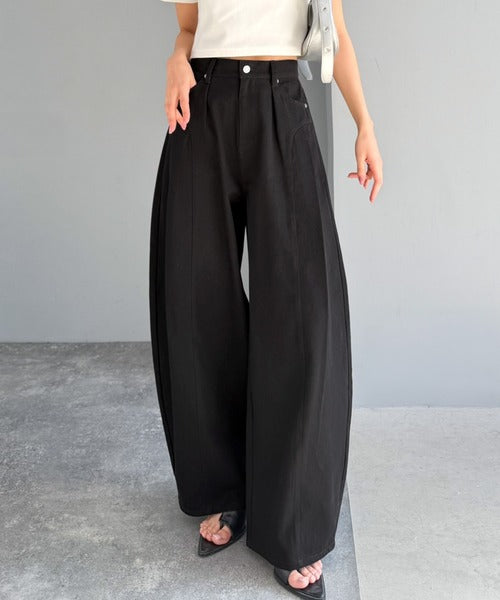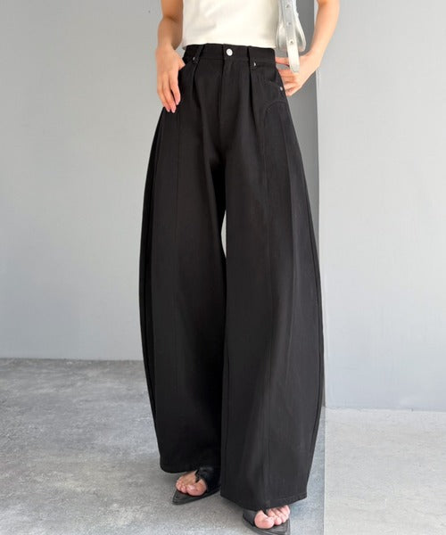 カーブパンツ特有のボリュームを活かし、
