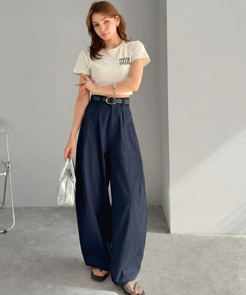 【mily bilet】後ろ姿映え確定♪インして可愛い、春夏のマストアイテム。 綿100%切り替えタックカーブパンツ mi0789011