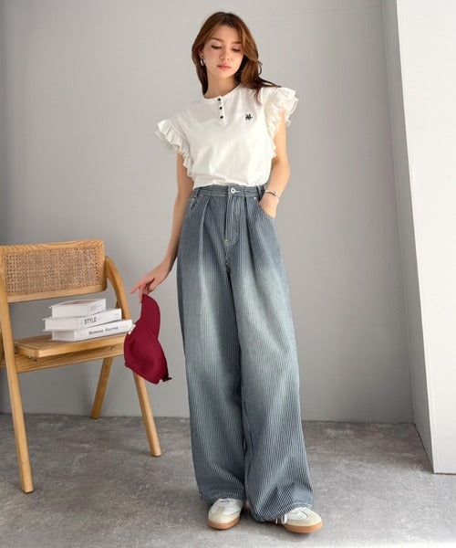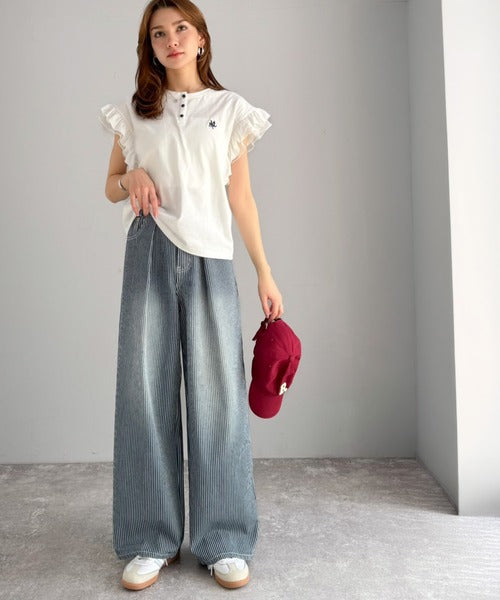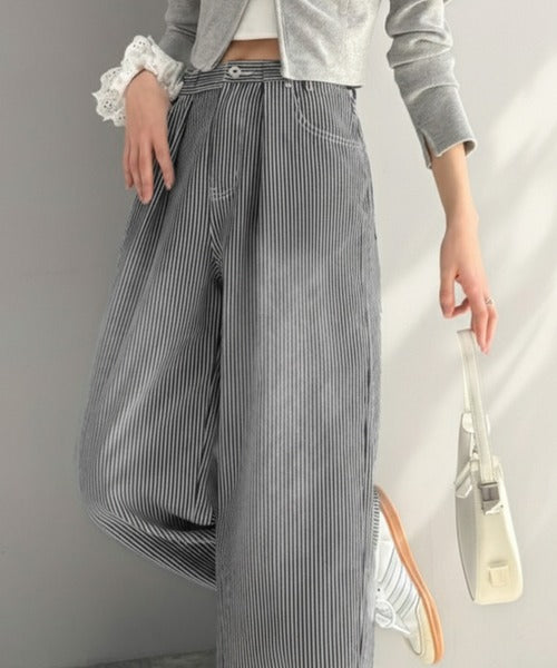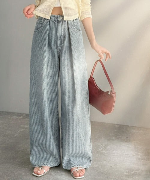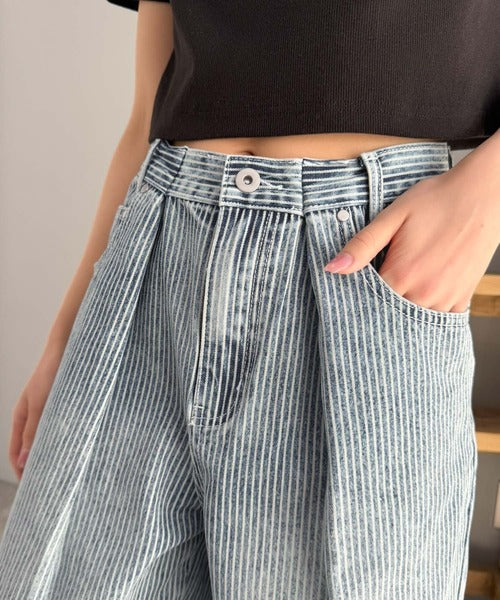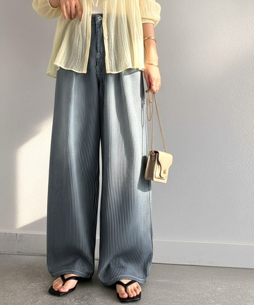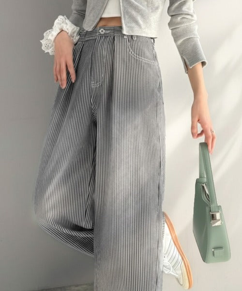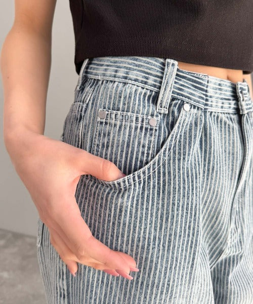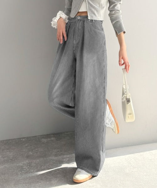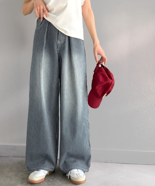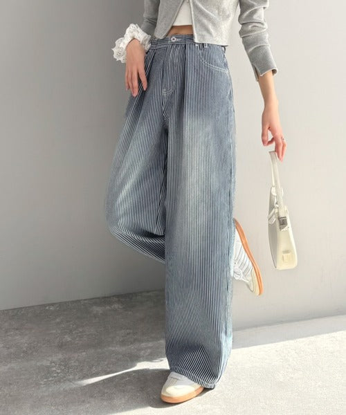 【mily bilet】こなれ感漂うヴィンテージ風デニム。タック入りヒッコリーパンツ mi0909024