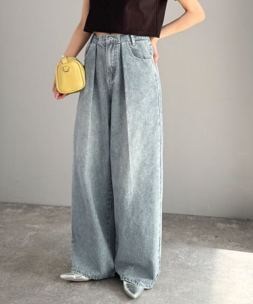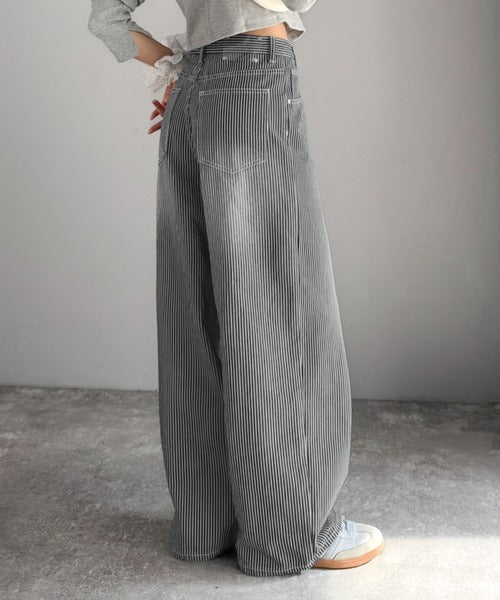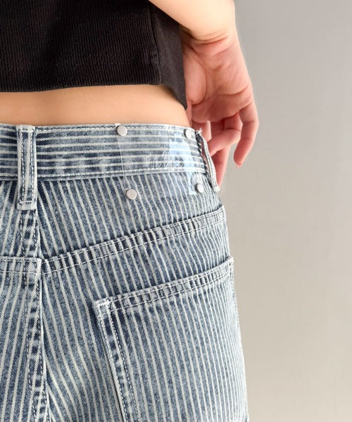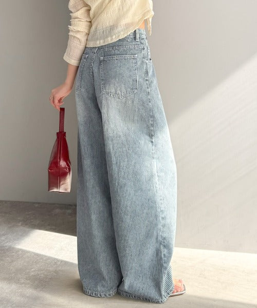 脚長効果抜群のヒッコリーデニム。