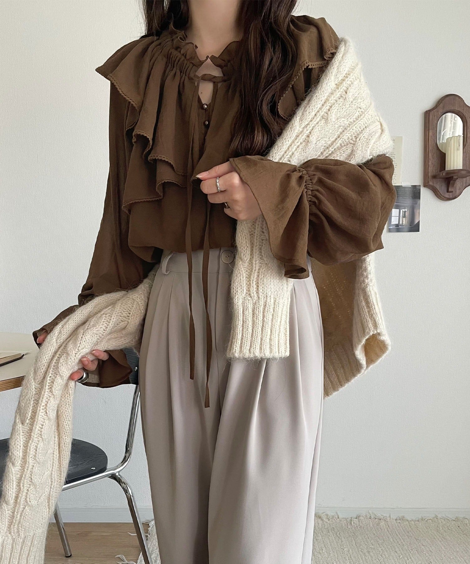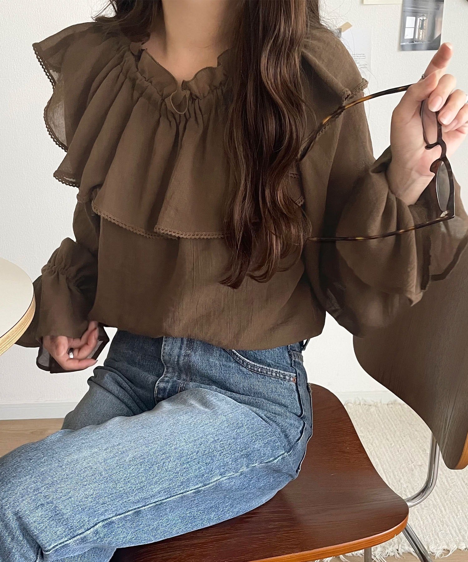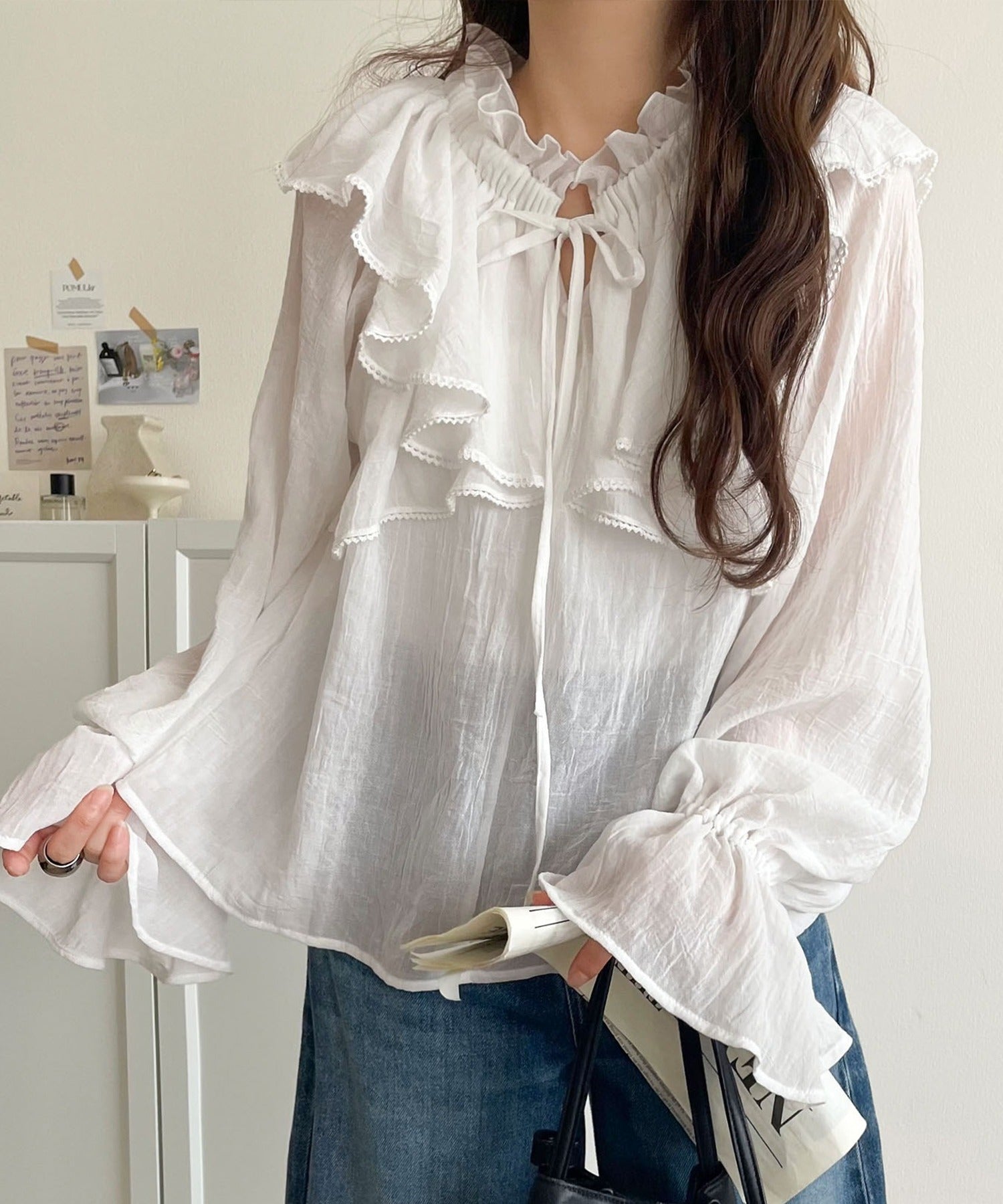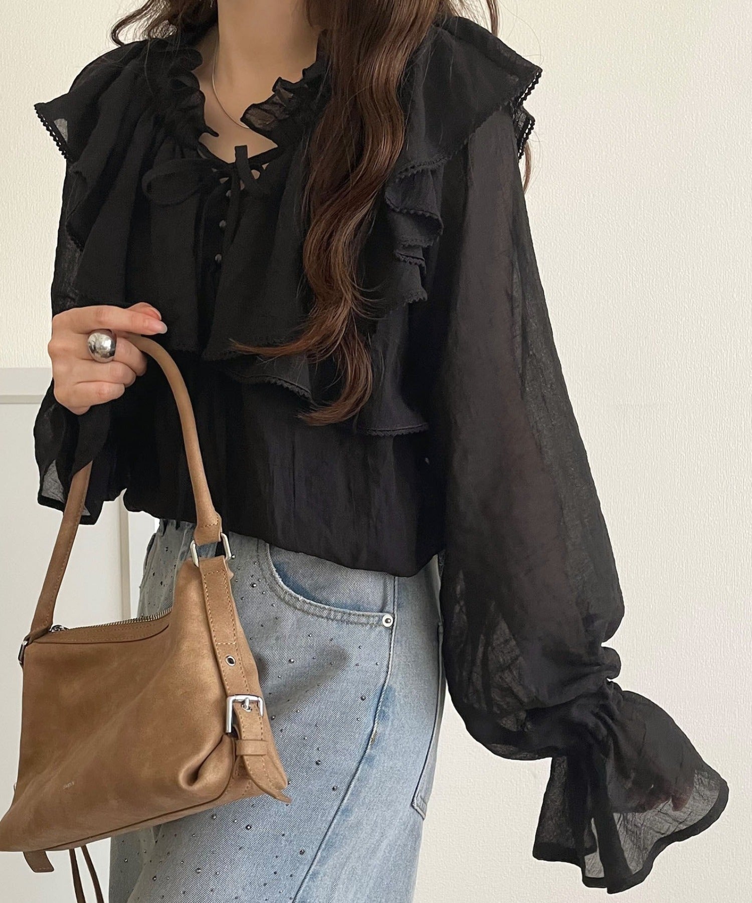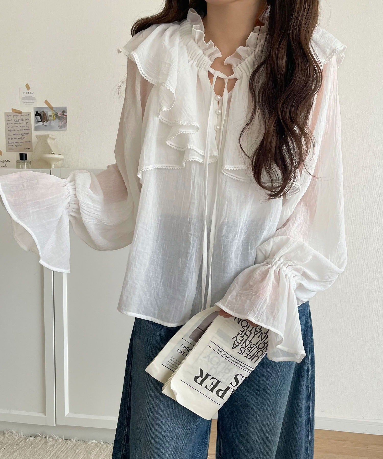 1枚で女性らしさを引き立てるフリルブラウスは存在感がありながらも