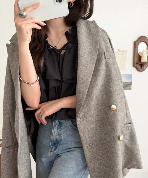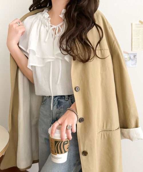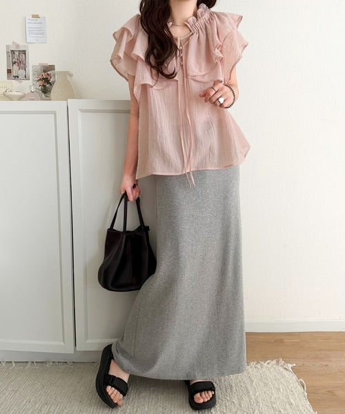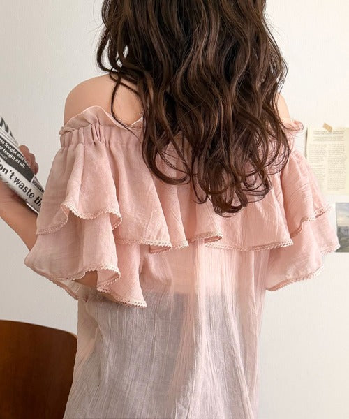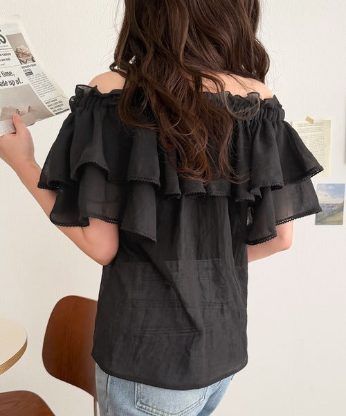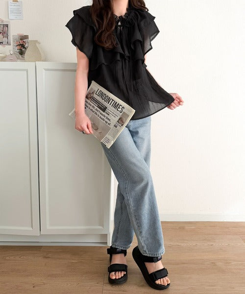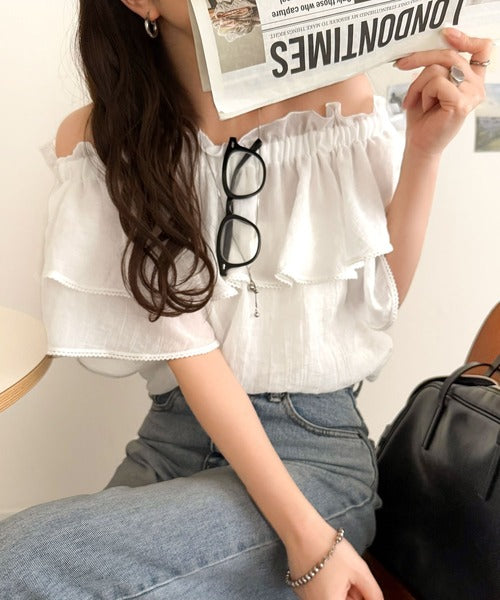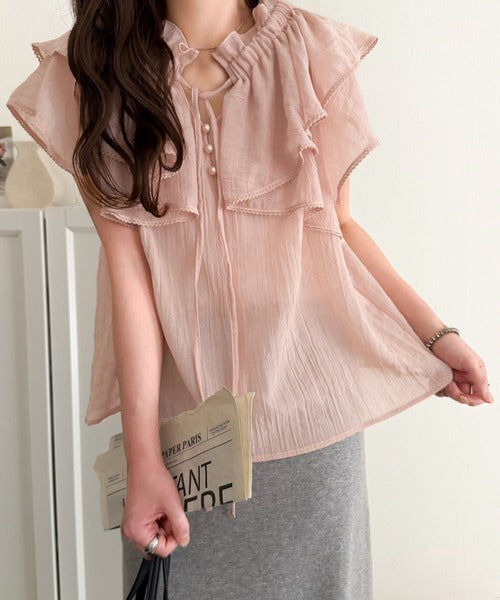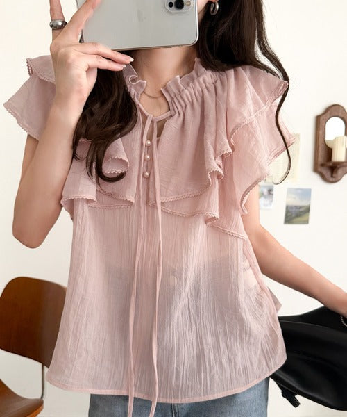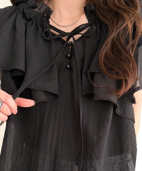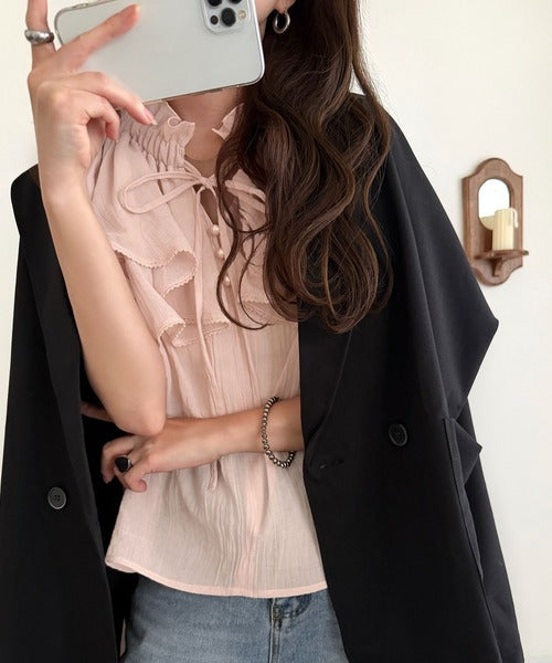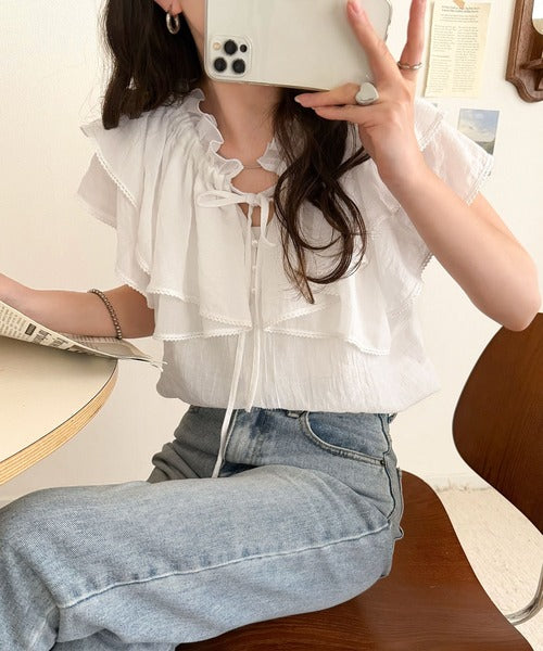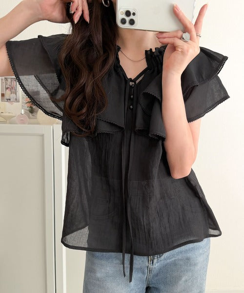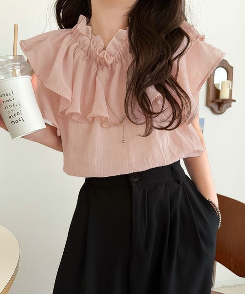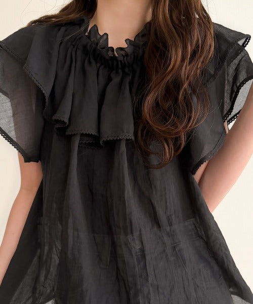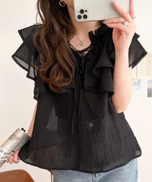 甘すぎない大人のラッフルフリルで360度どこから見ても可愛いブラウス。