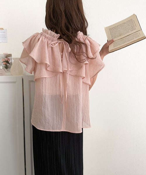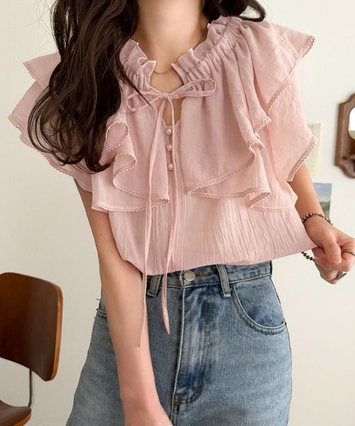 【mily bilet】マルチウェイで360度どこから見ても可愛い!ギャザーフリルリボンブラウス(半袖) mi1019132