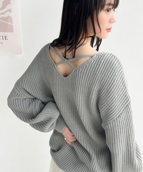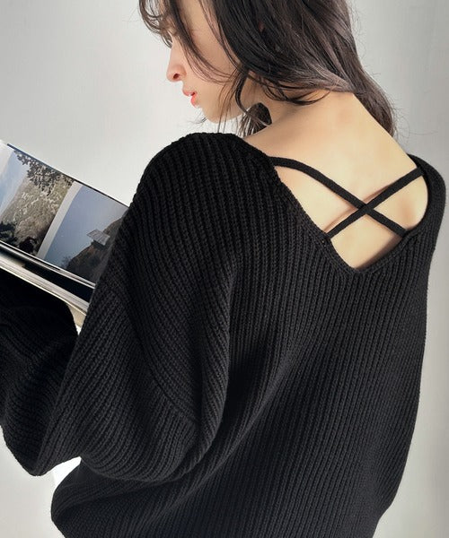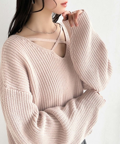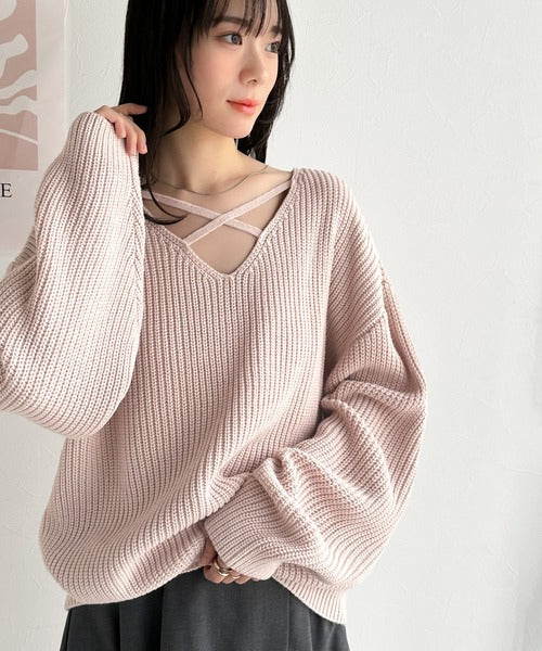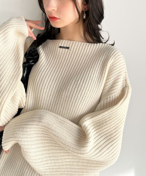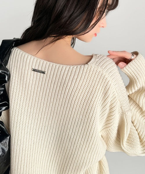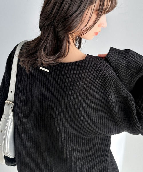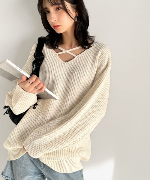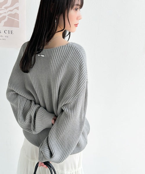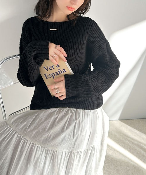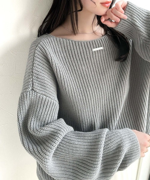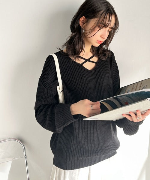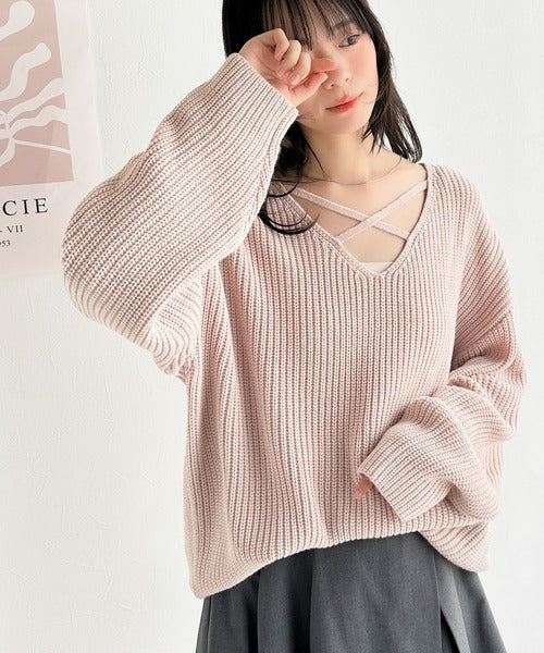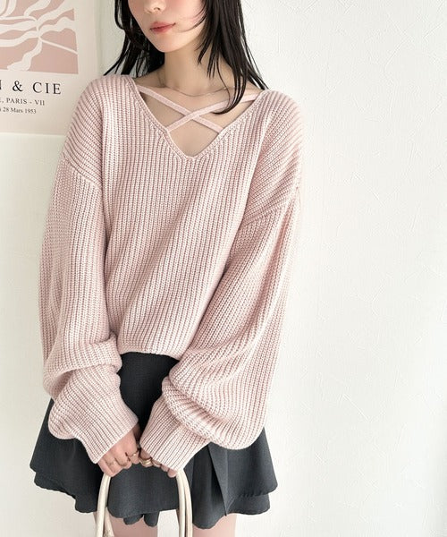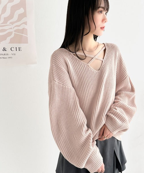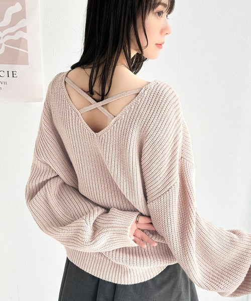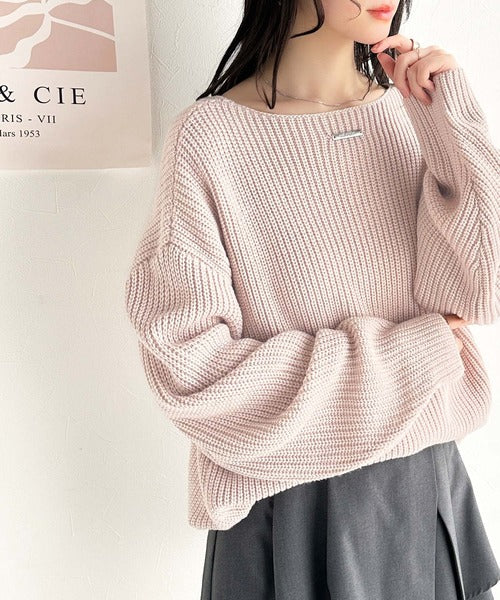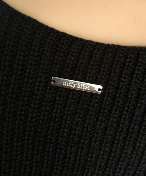 【mily bilet】キュートなふんわりスタイル。2wayプレート使いクロスデザイン畦編みニットプルオーバー(長袖) mi1029103
