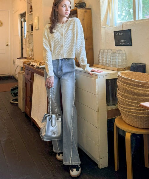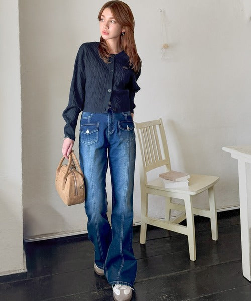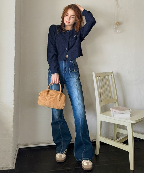 立体感のあるランダムケーブルが特徴の、大人のための上品カーディガン♪
