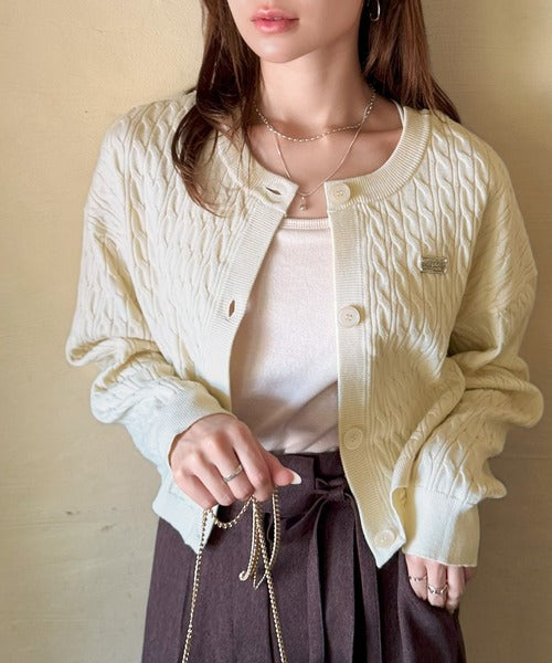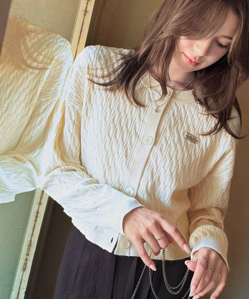 【mily bilet】やわらかな優しさ、漂う気品。前後2wayプレート使いケーブルニットカーディガン(長袖) mi1029140