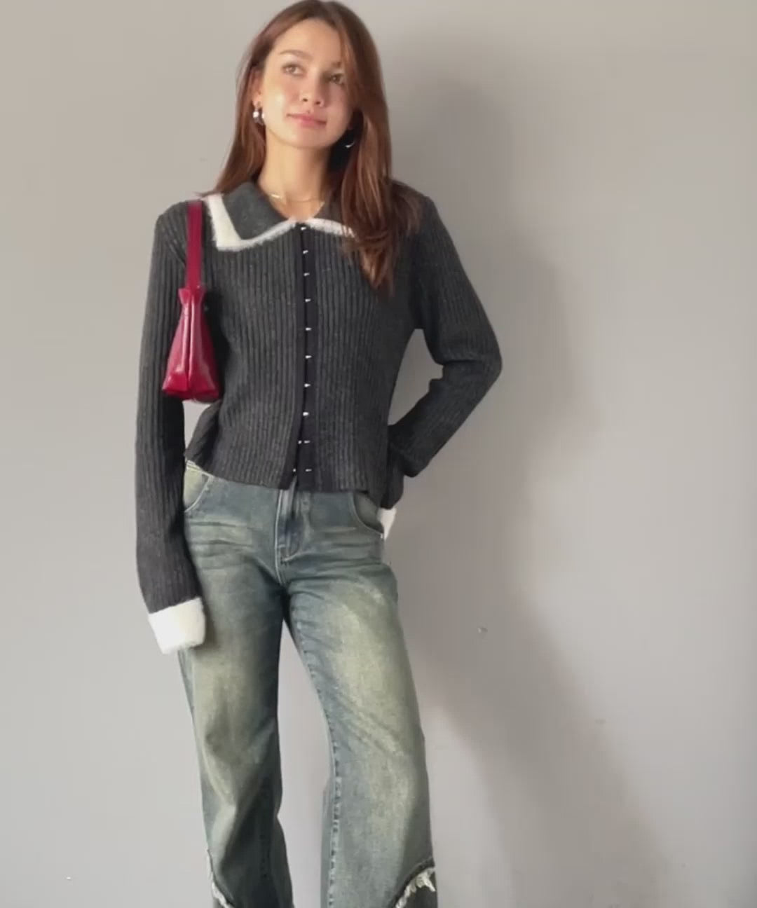 ・異素材ダブルカラー(リブニットとシャギー素材の異素材コンビ)